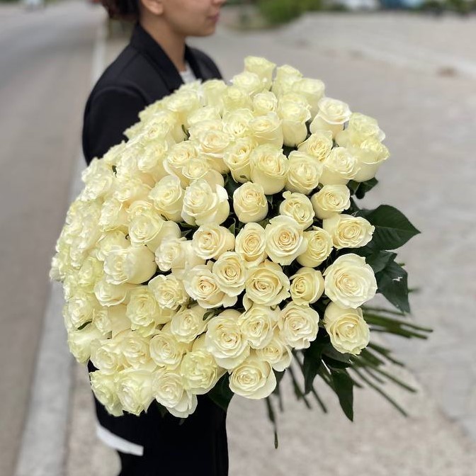 101 белая роза Эквадор купить с доставкой в Улан-Удэ за 33430 рублей | «Цветочный BAZAAR»