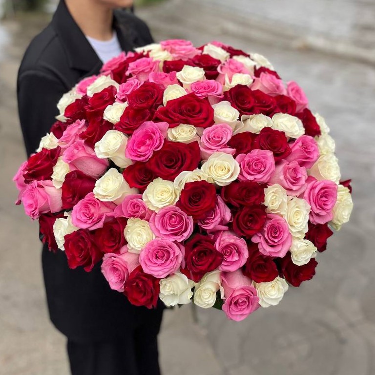 101 роза Микс Эквадор белого, красного и розового цвета купить с доставкой в Улан-Удэ за 33430 рублей | «Цветочный BAZAAR»