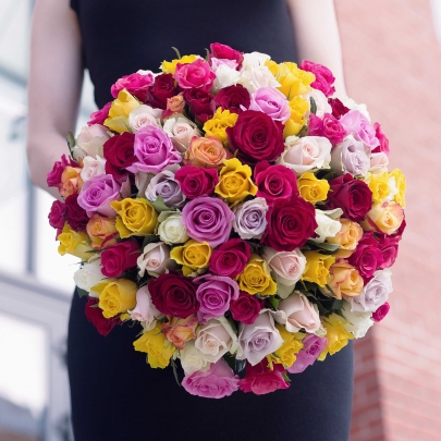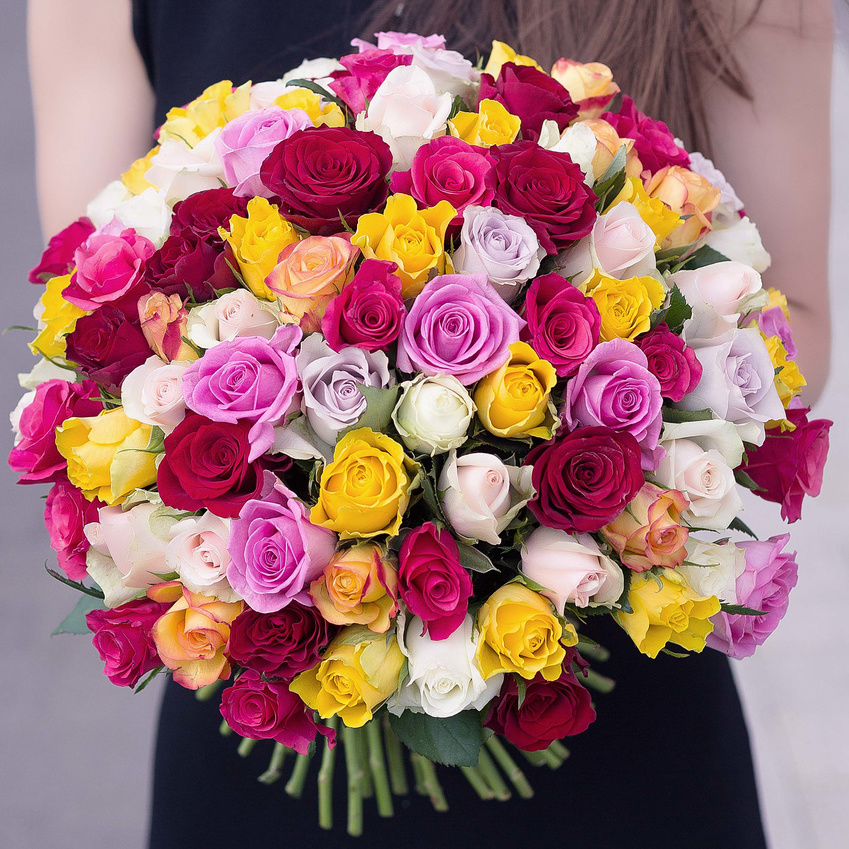 Букет из 101 розы цвета микс 50 см. под ленту.