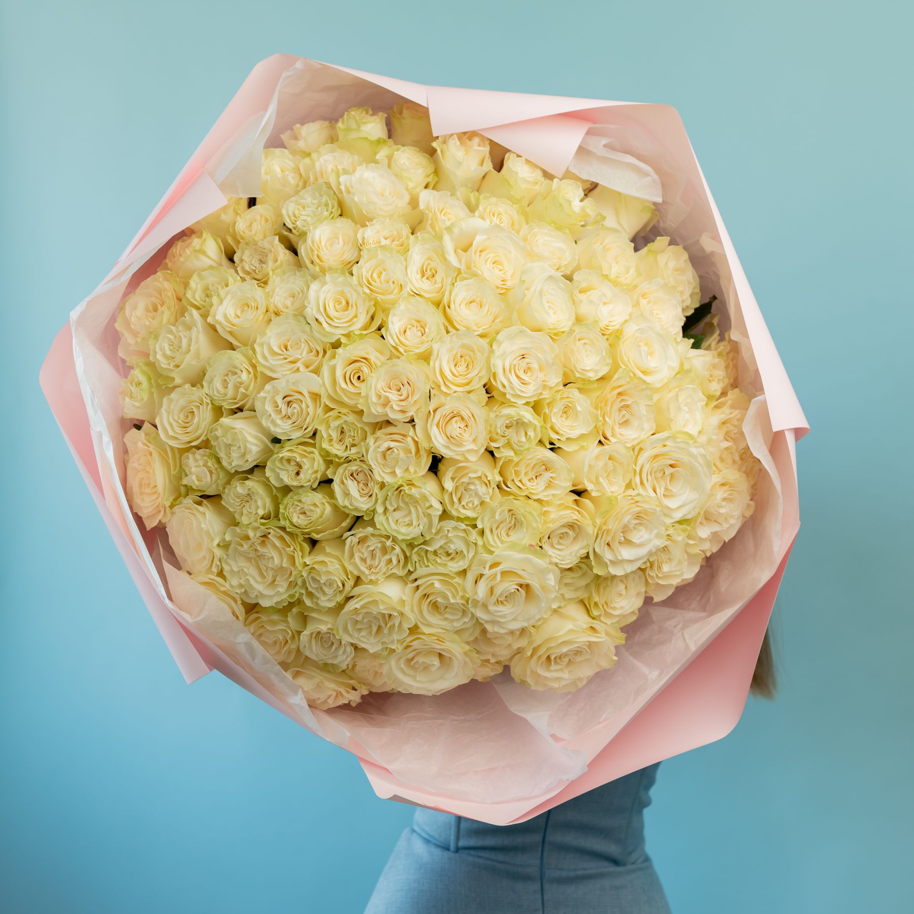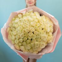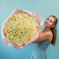 101 белая роза в упаковке (60см) купить с доставкой в Улан-Удэ за 41960 рублей | «Цветочный BAZAAR»