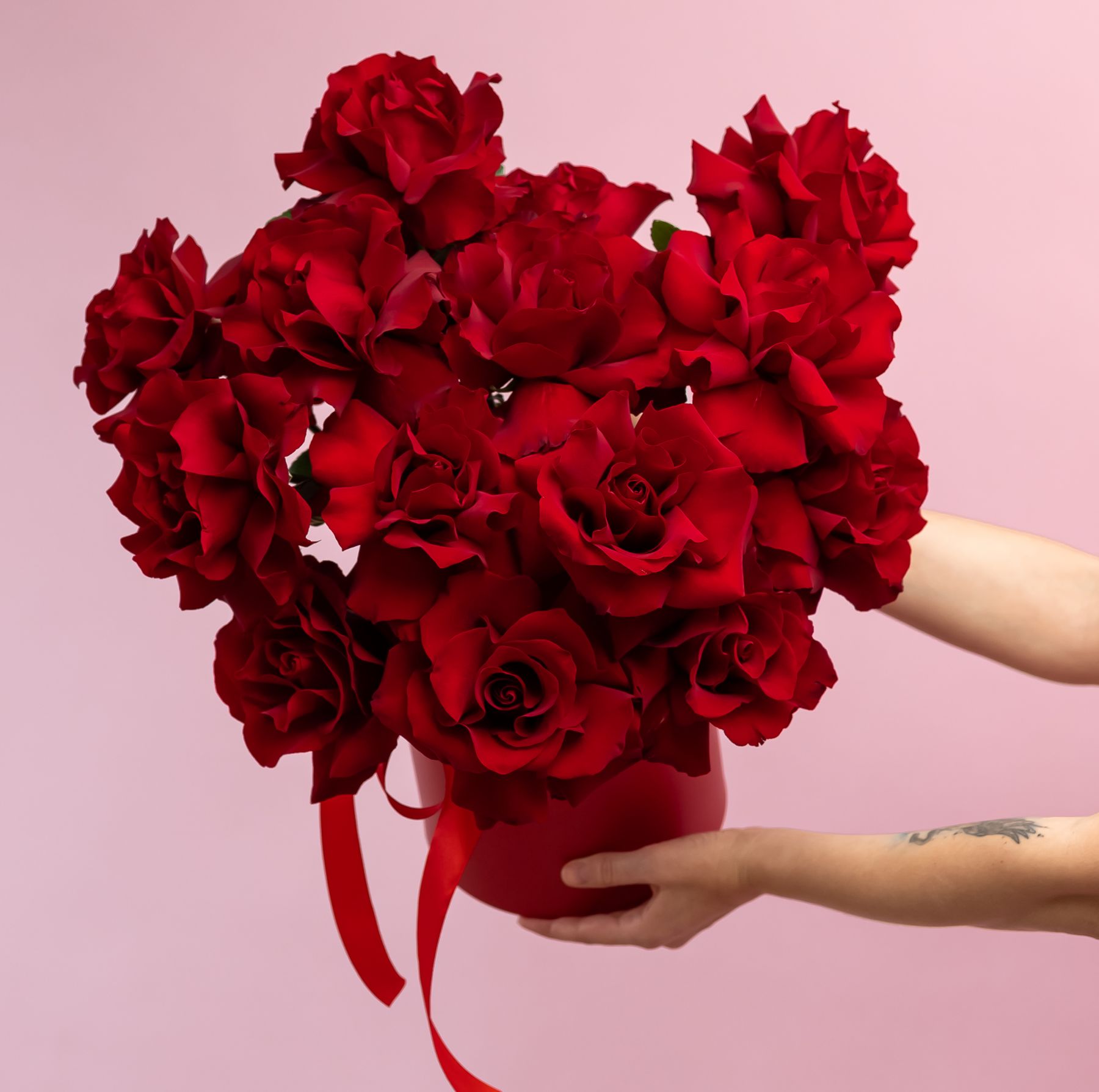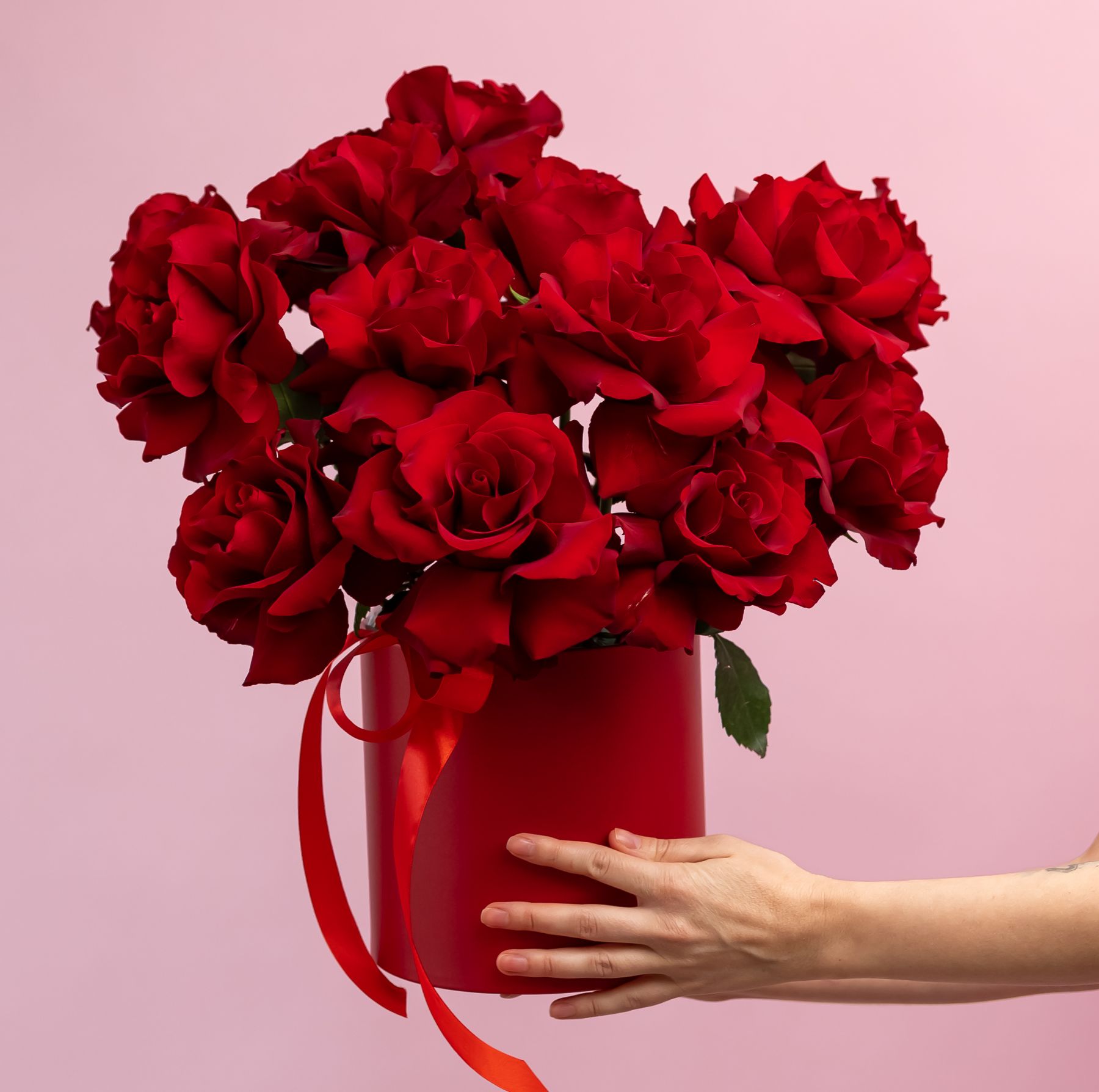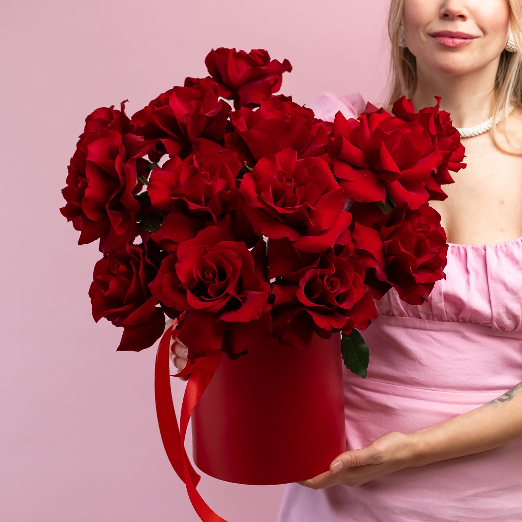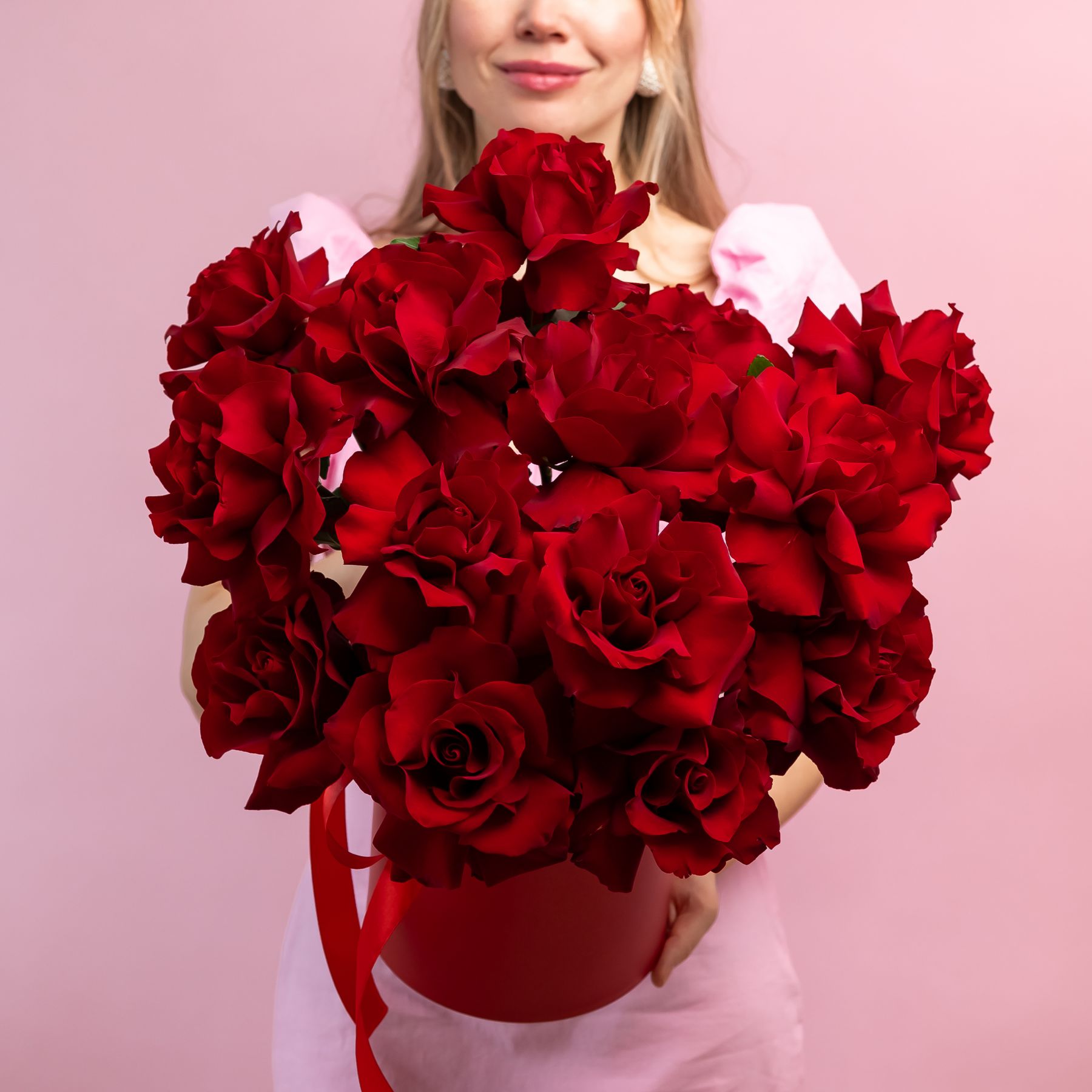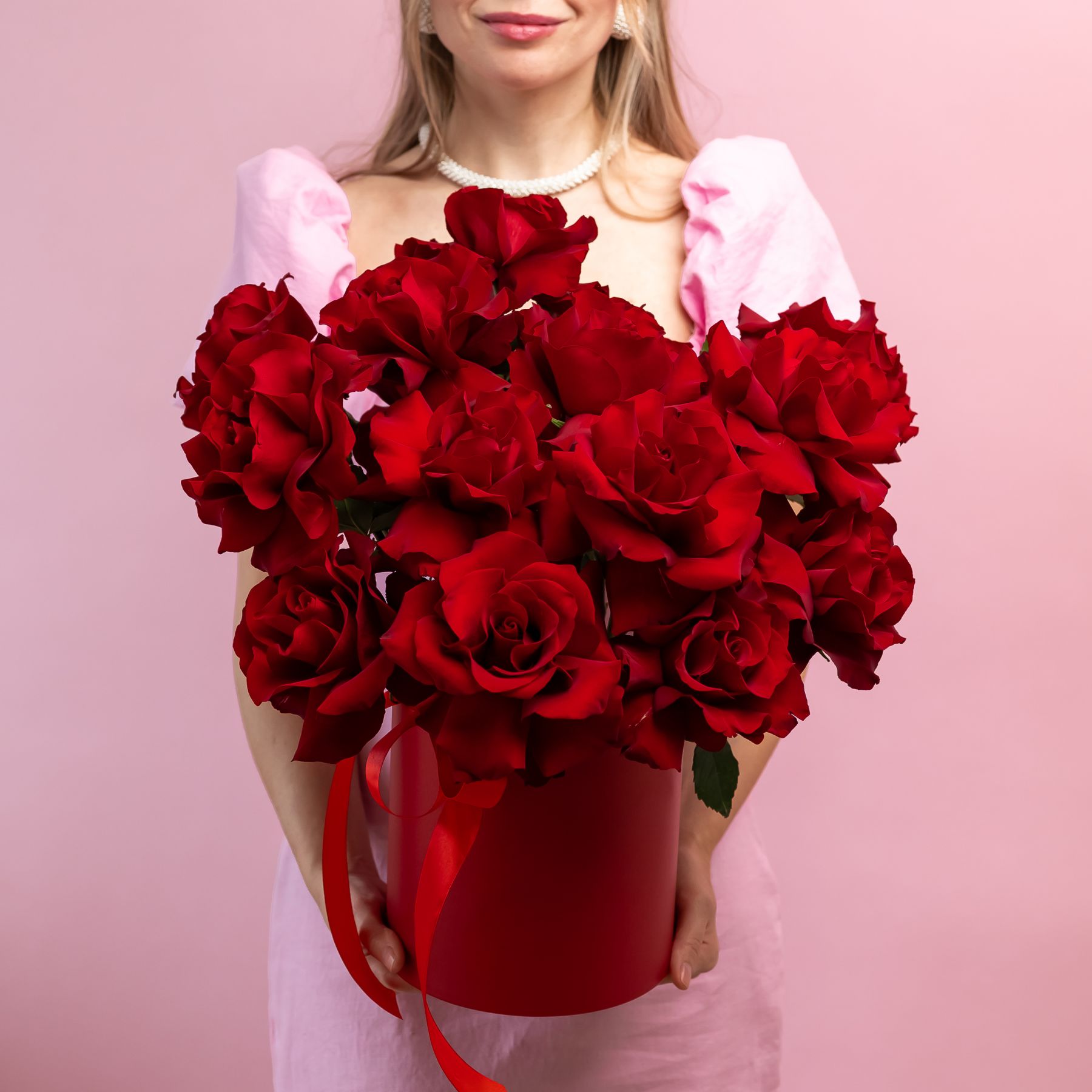 15 французских роз красных в шляпной коробке купить с доставкой в Улан-Удэ за 8150 рублей | «Цветочный BAZAAR»