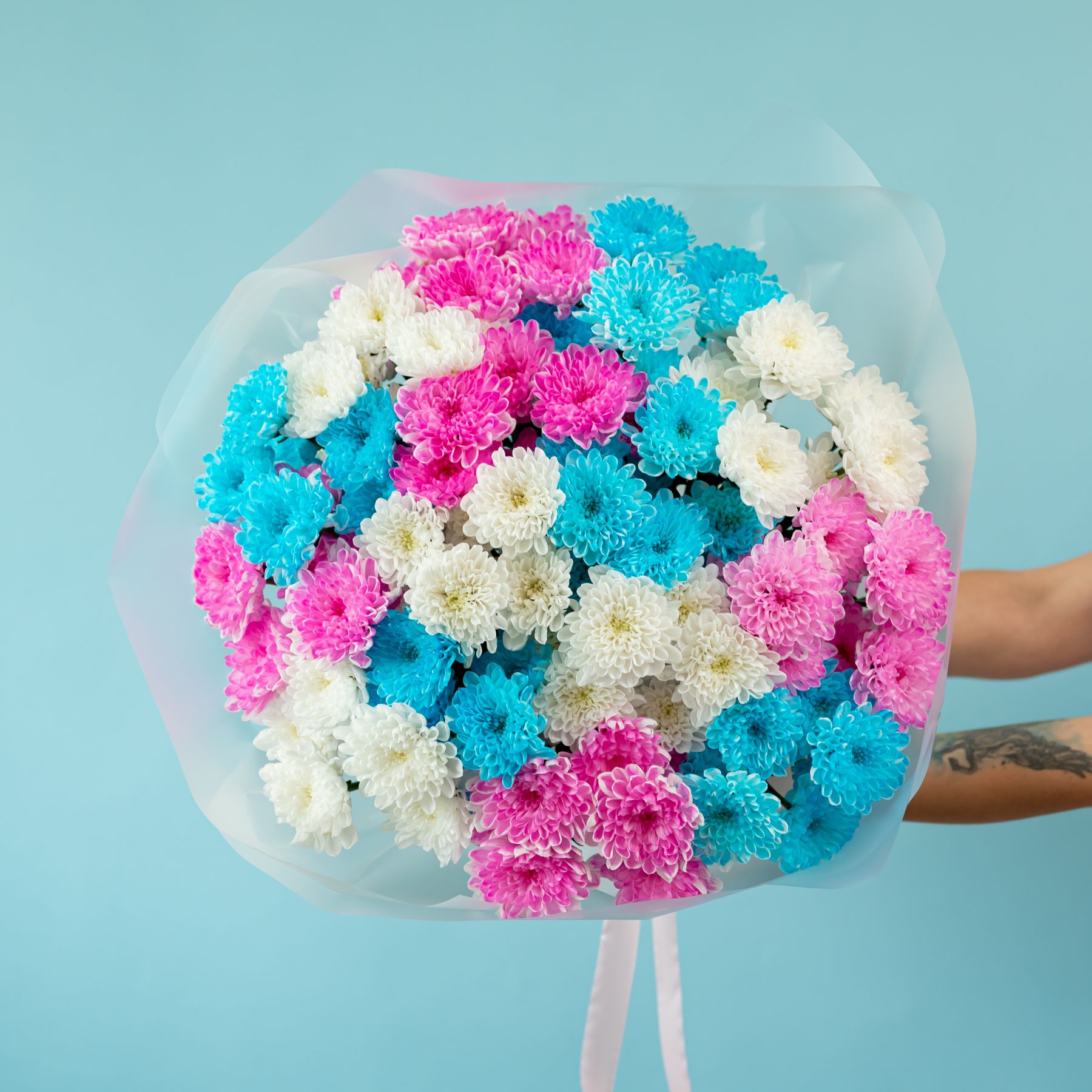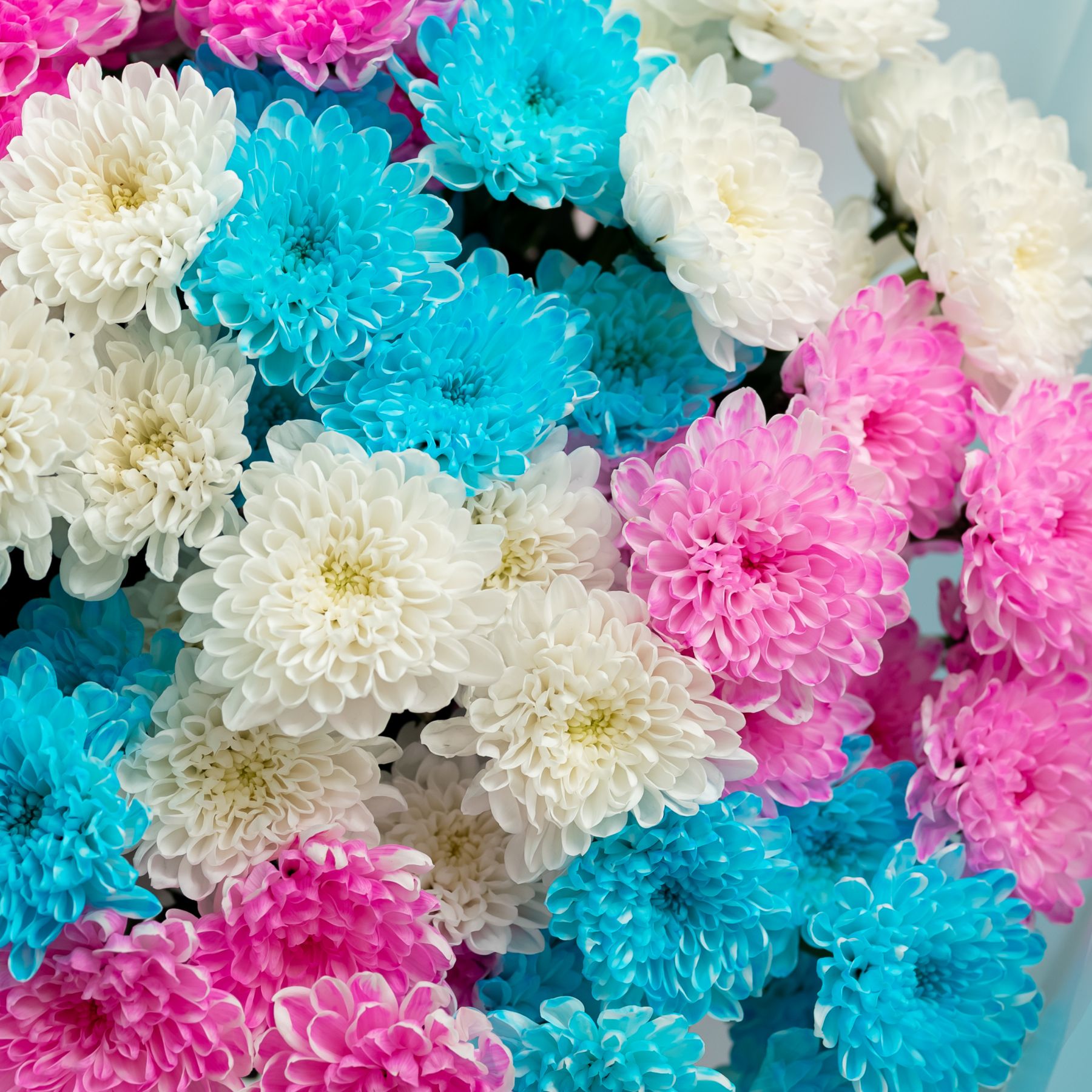 15 хризантем цвета микс крашенная купить с доставкой в Улан-Удэ за 9550 рублей | «Цветочный BAZAAR»