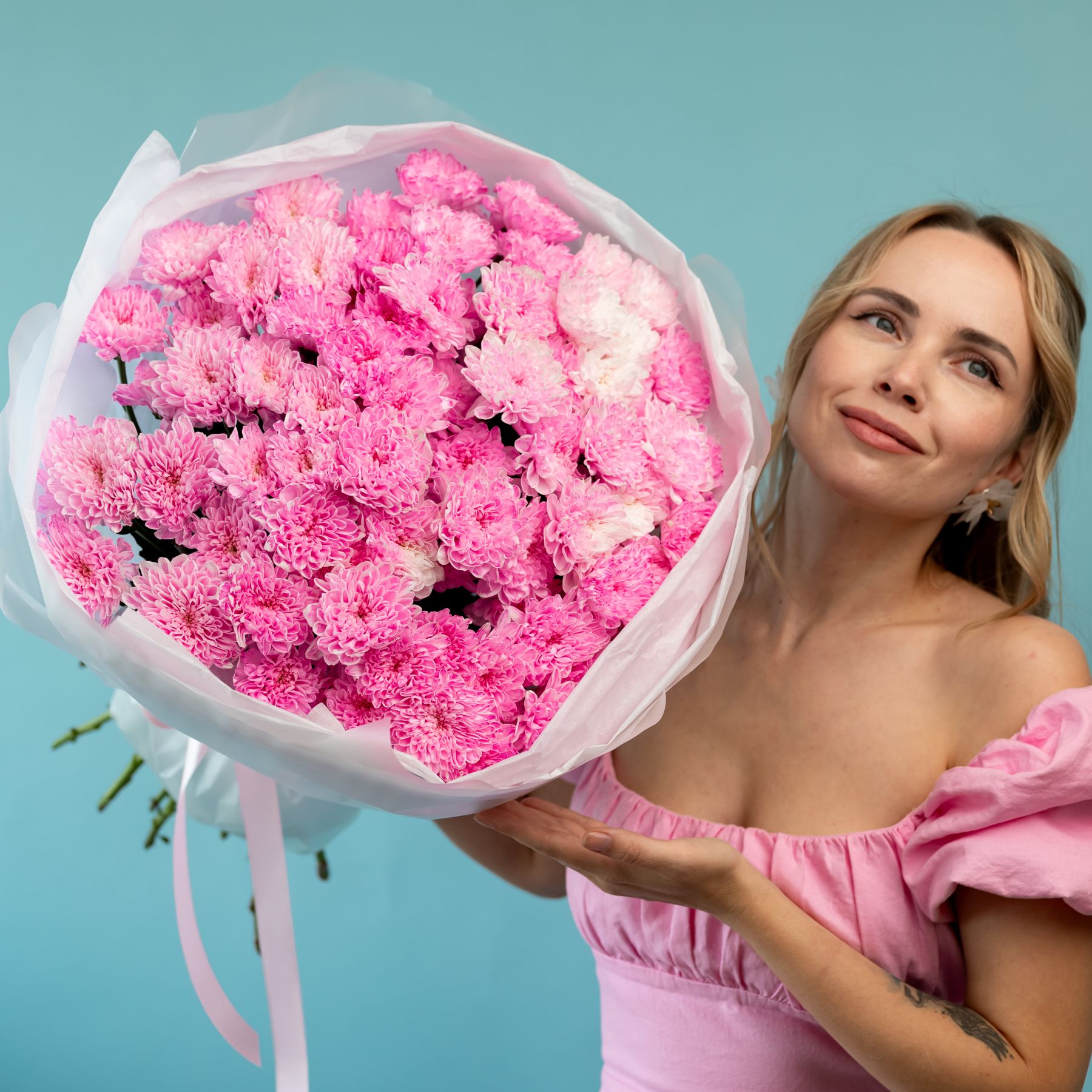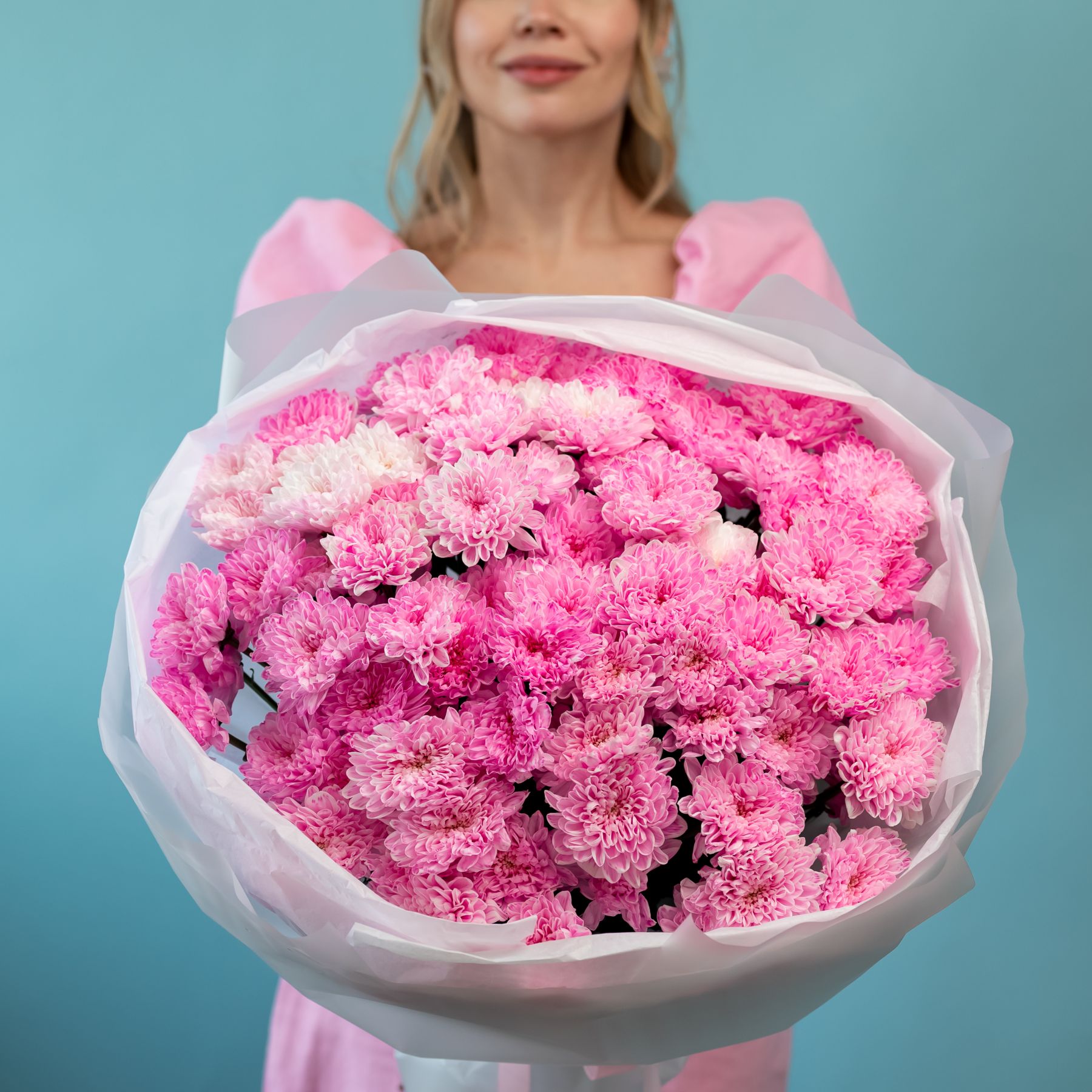 15 хризантем нежно-розовыз купить с доставкой в Улан-Удэ за 9550 рублей | «Цветочный BAZAAR»