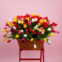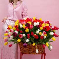 201 тюльпан в корзине купить с доставкой в Улан-Удэ за 52250 рублей | «Цветочный BAZAAR»