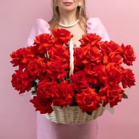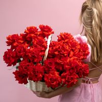 25 Французских роз алых в корзине купить с доставкой в Улан-Удэ за 14650 рублей | «Цветочный BAZAAR»