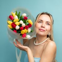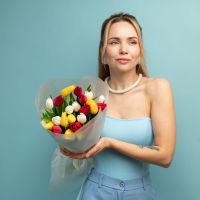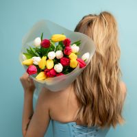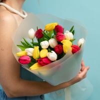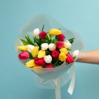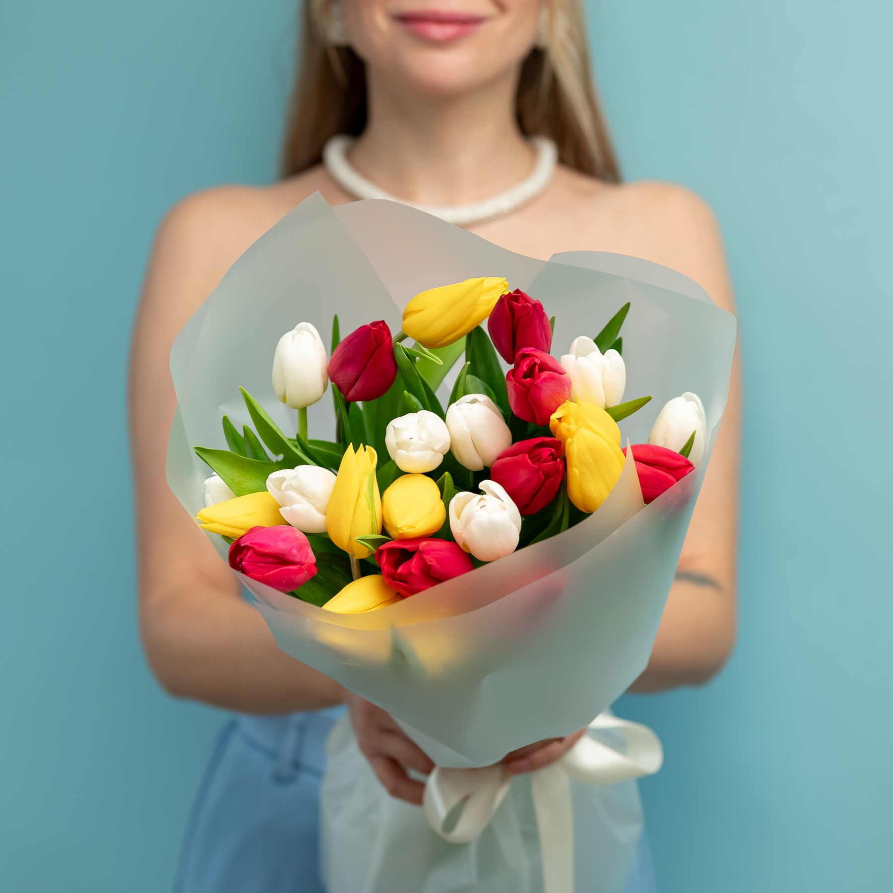 Букет из 25 тюльпанов микс в упаковке купить с доставкой в Улан-Удэ за 6850 рублей | «Цветочный BAZAAR»