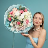 Круглый нежный букет с гортензией купить с доставкой в Улан-Удэ за 7790 рублей | «Цветочный BAZAAR»