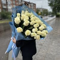 33 белые розы 70 см с формлением купить с доставкой в Улан-Удэ за 16250 рублей | «Цветочный BAZAAR»