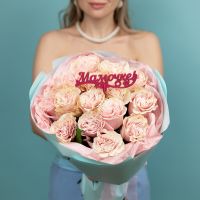 Букет маме из роз с топпером купить с доставкой в Улан-Удэ за 7500 рублей | «Цветочный BAZAAR»