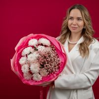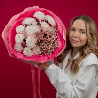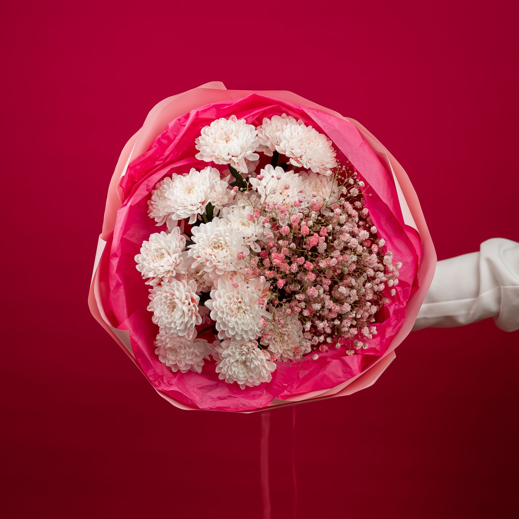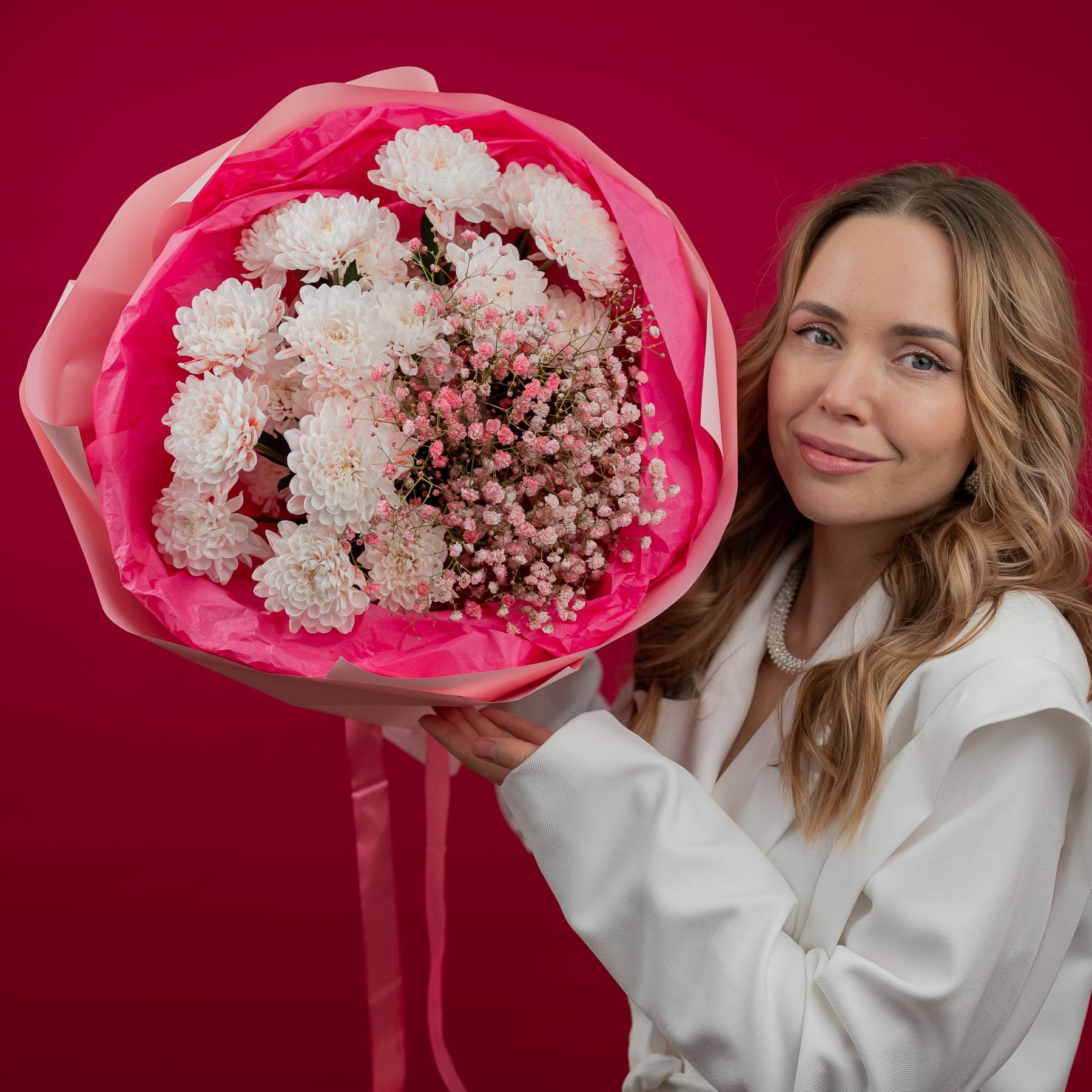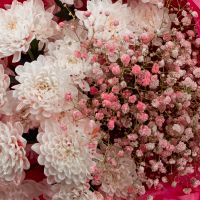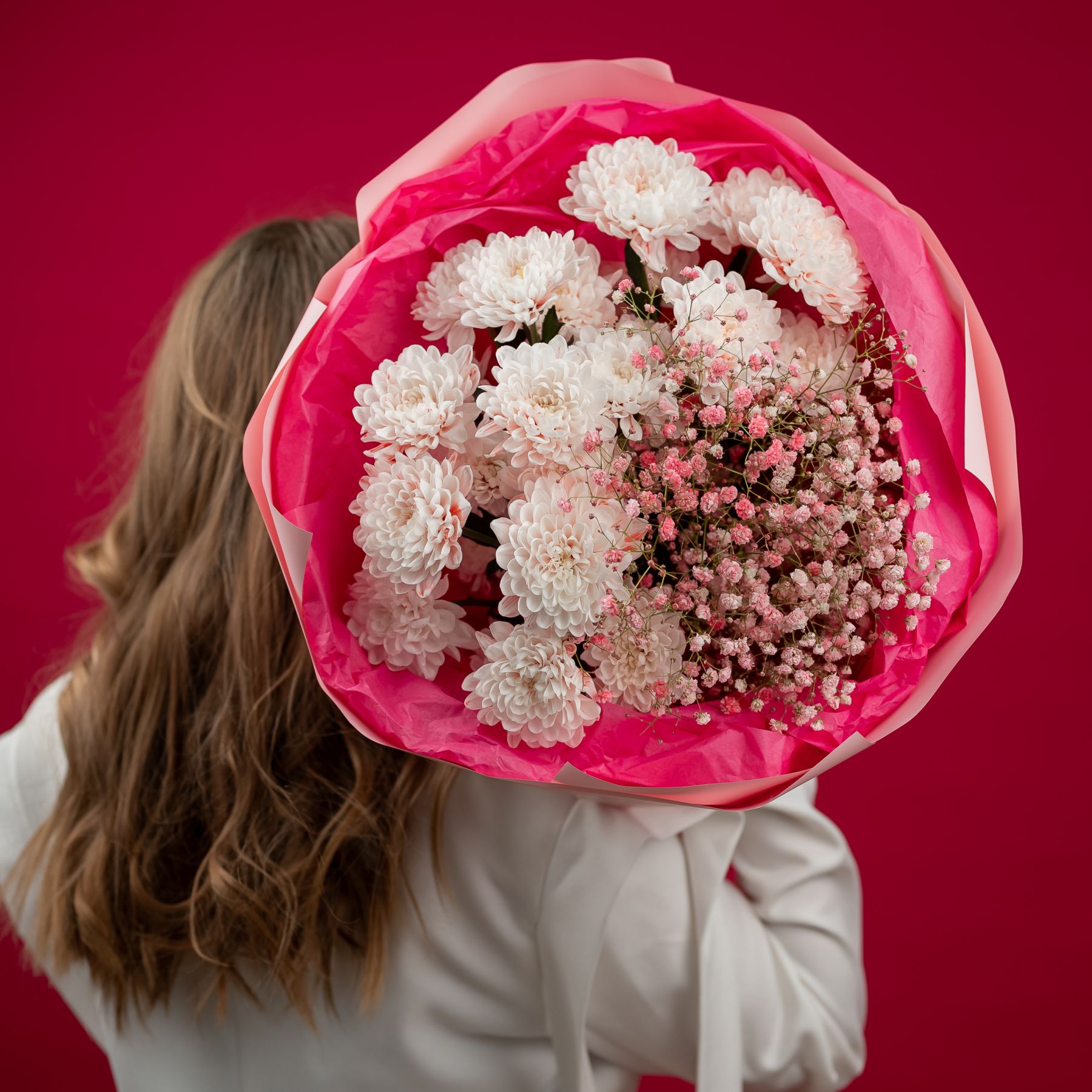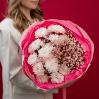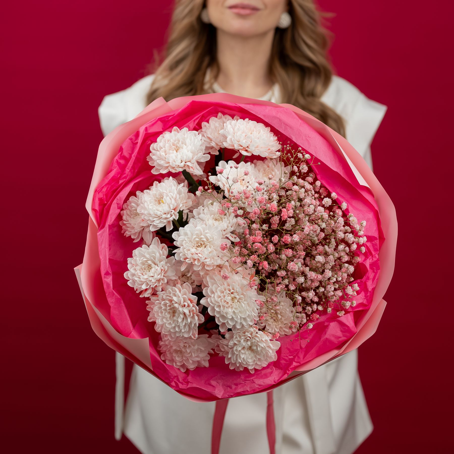 Букет с кустовыми хризантемами и гипсофилой купить с доставкой в Улан-Удэ за 3520 рублей | «Цветочный BAZAAR»