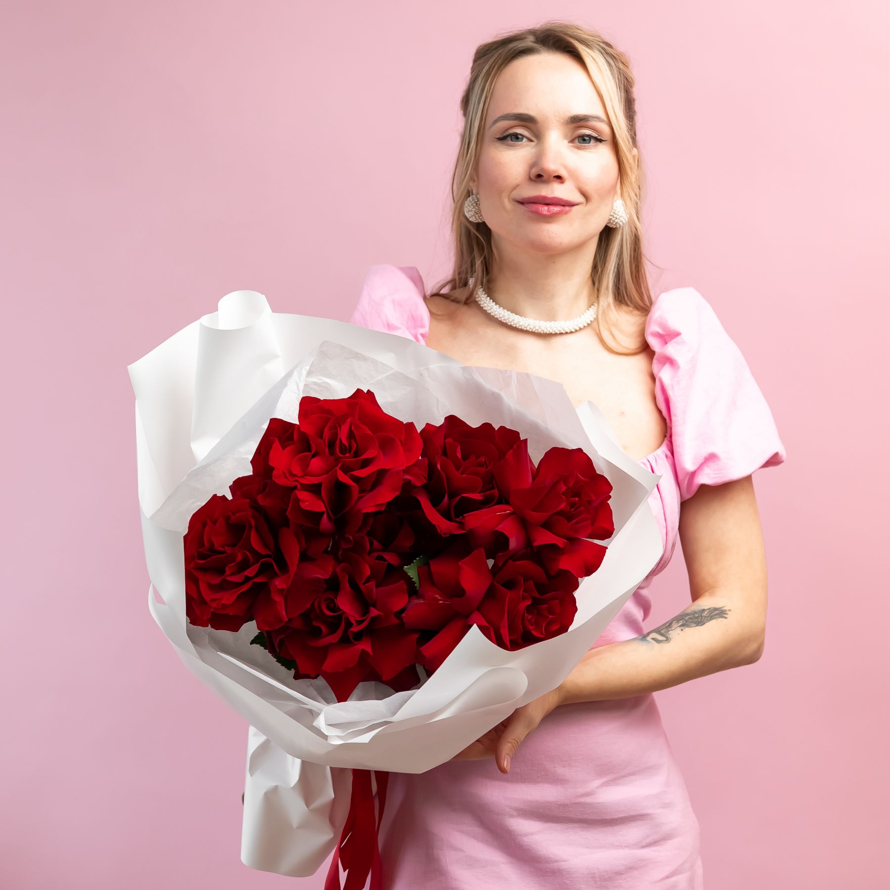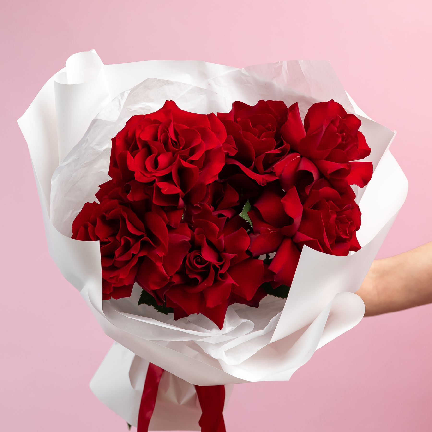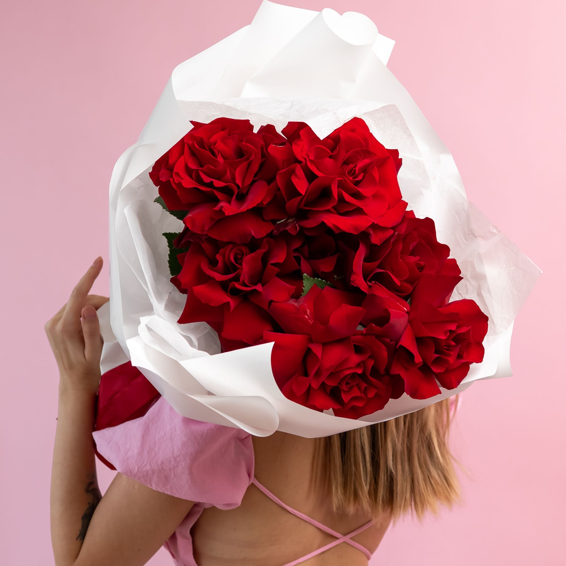 7 французских роз красных в упаковке купить с доставкой в Улан-Удэ за 3650 рублей | «Цветочный BAZAAR»
