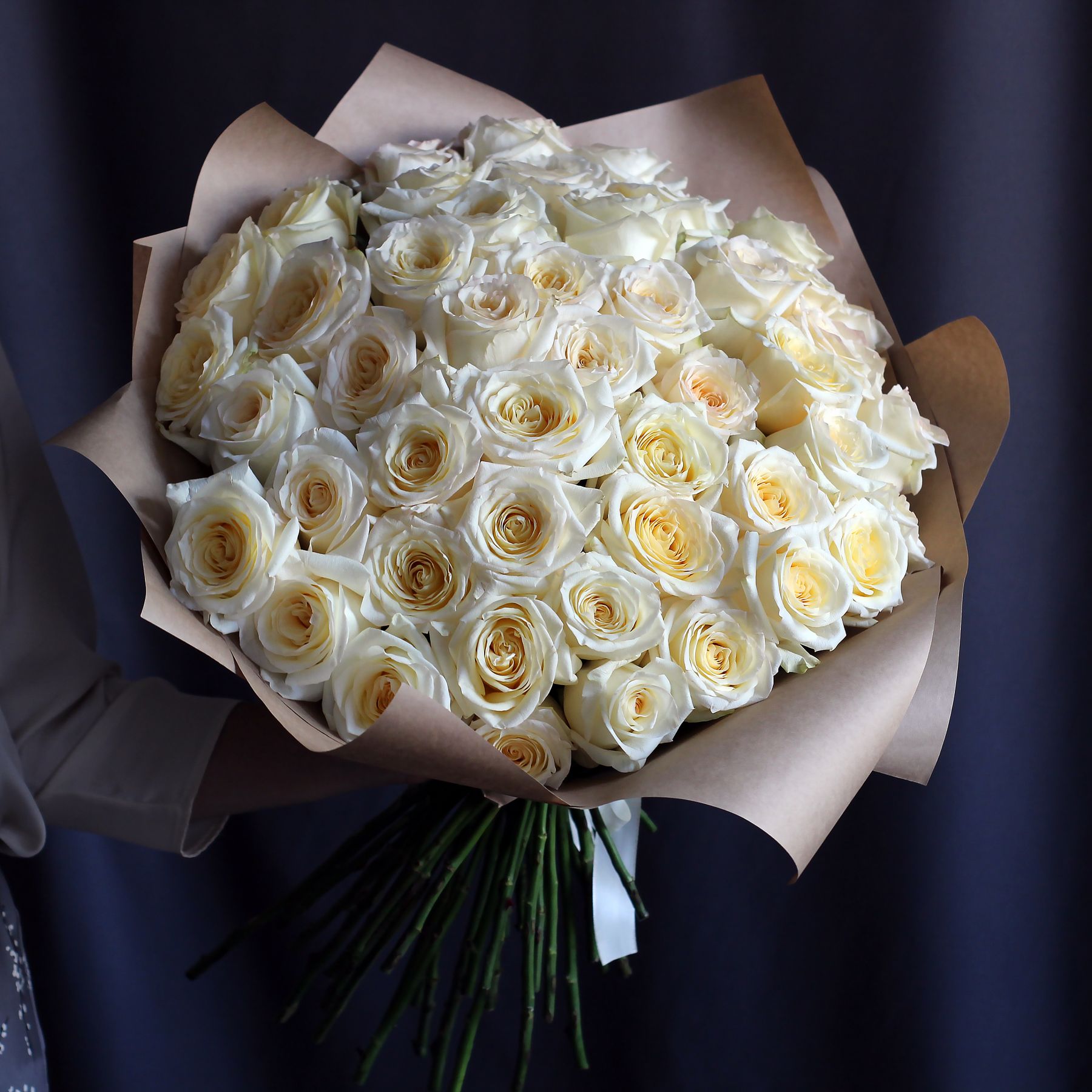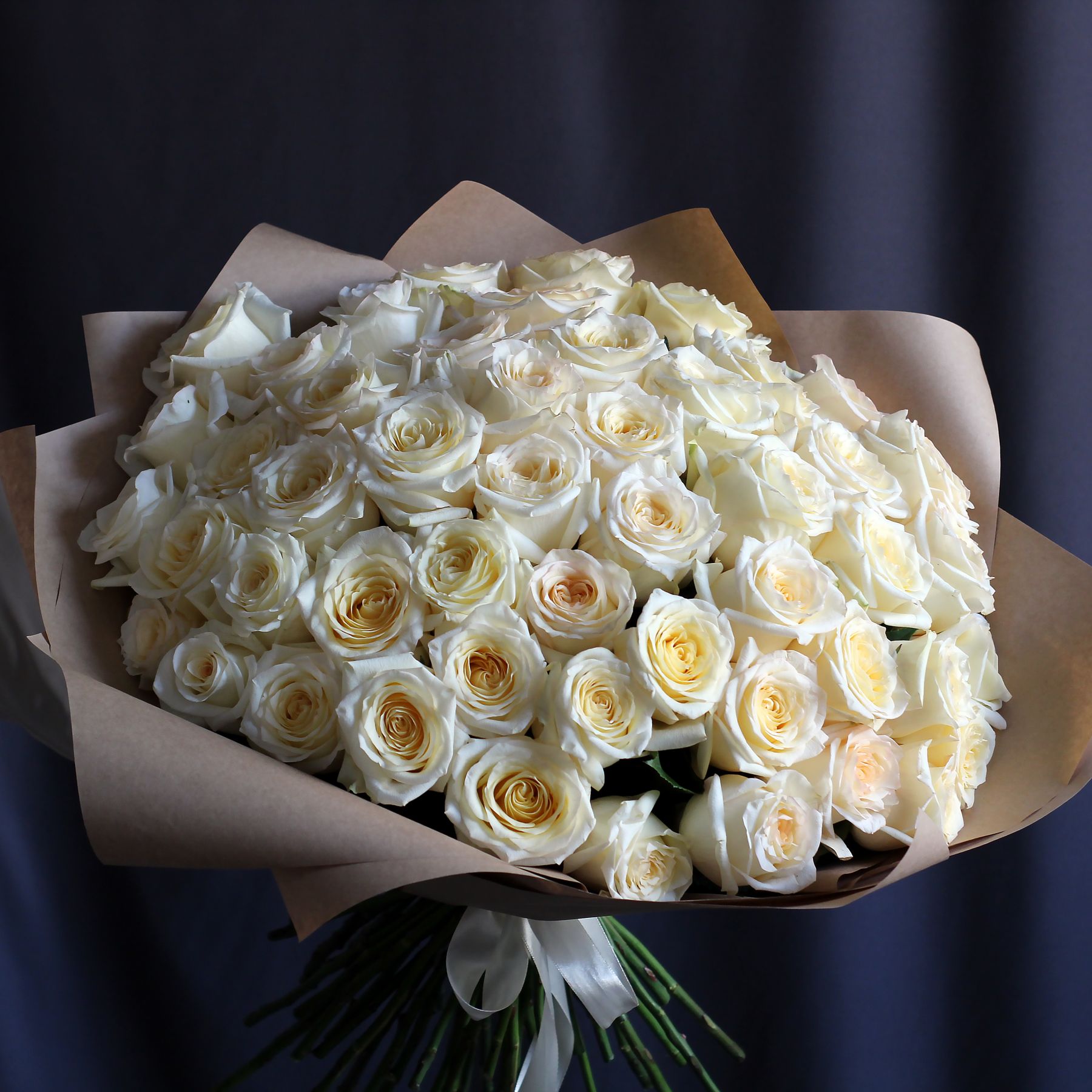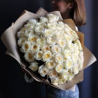 51 белая пионовидная роза купить с доставкой в Улан-Удэ за 26000 рублей | «Цветочный BAZAAR»