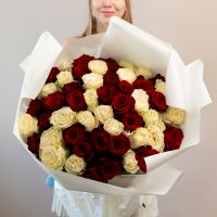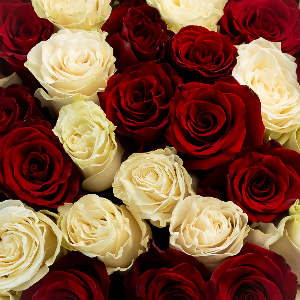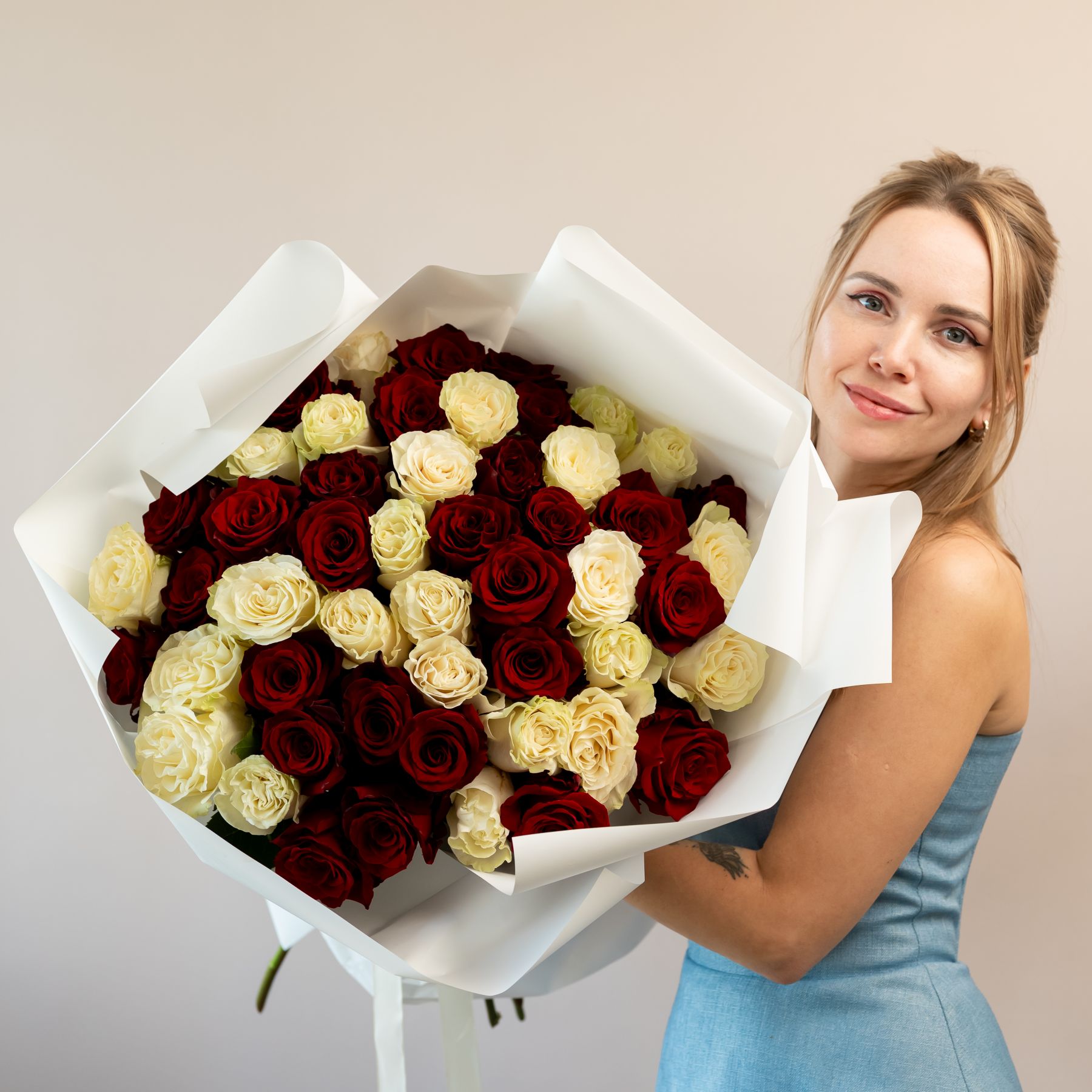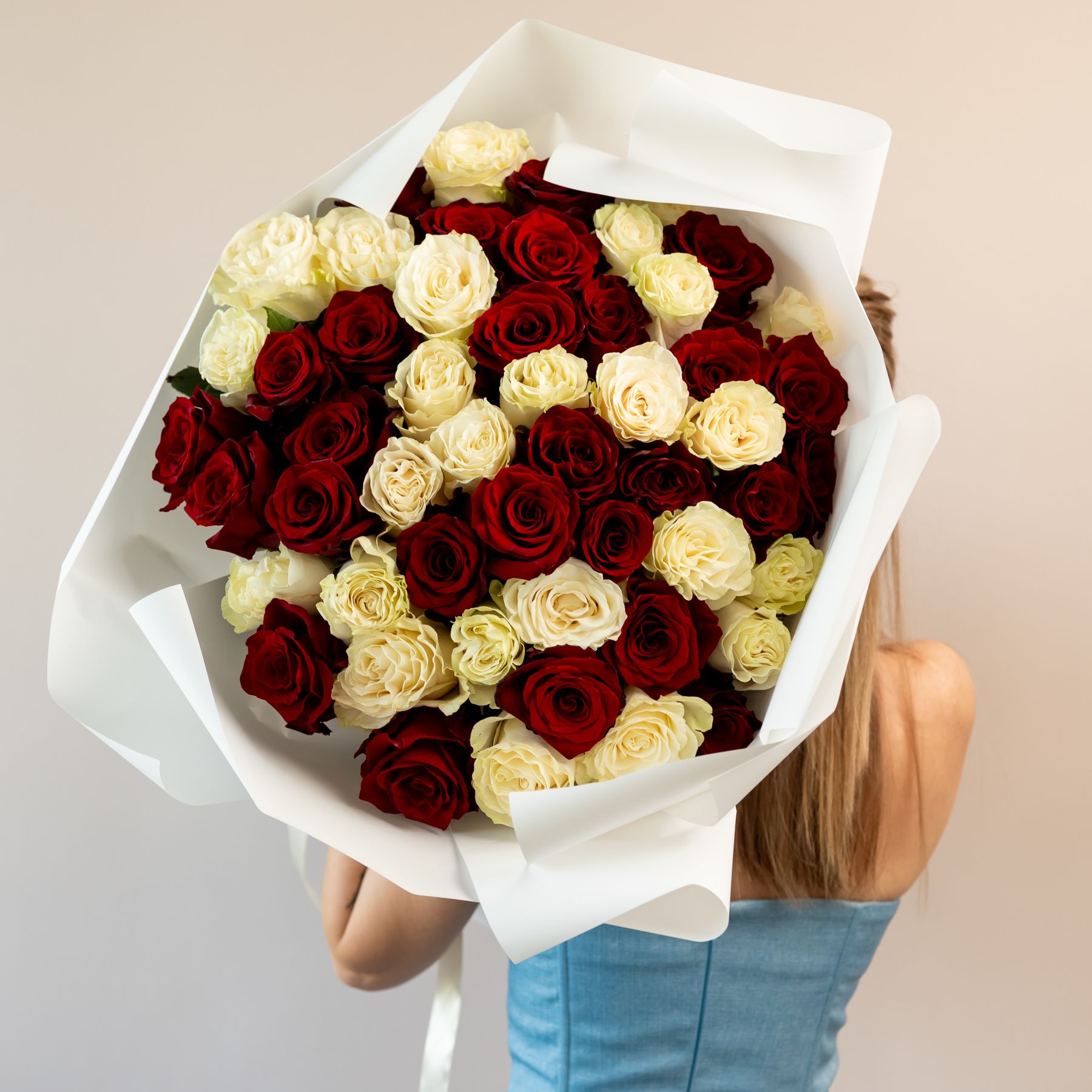 51 красная и белая роза (60см) купить с доставкой в Улан-Удэ за 21410 рублей | «Цветочный BAZAAR»