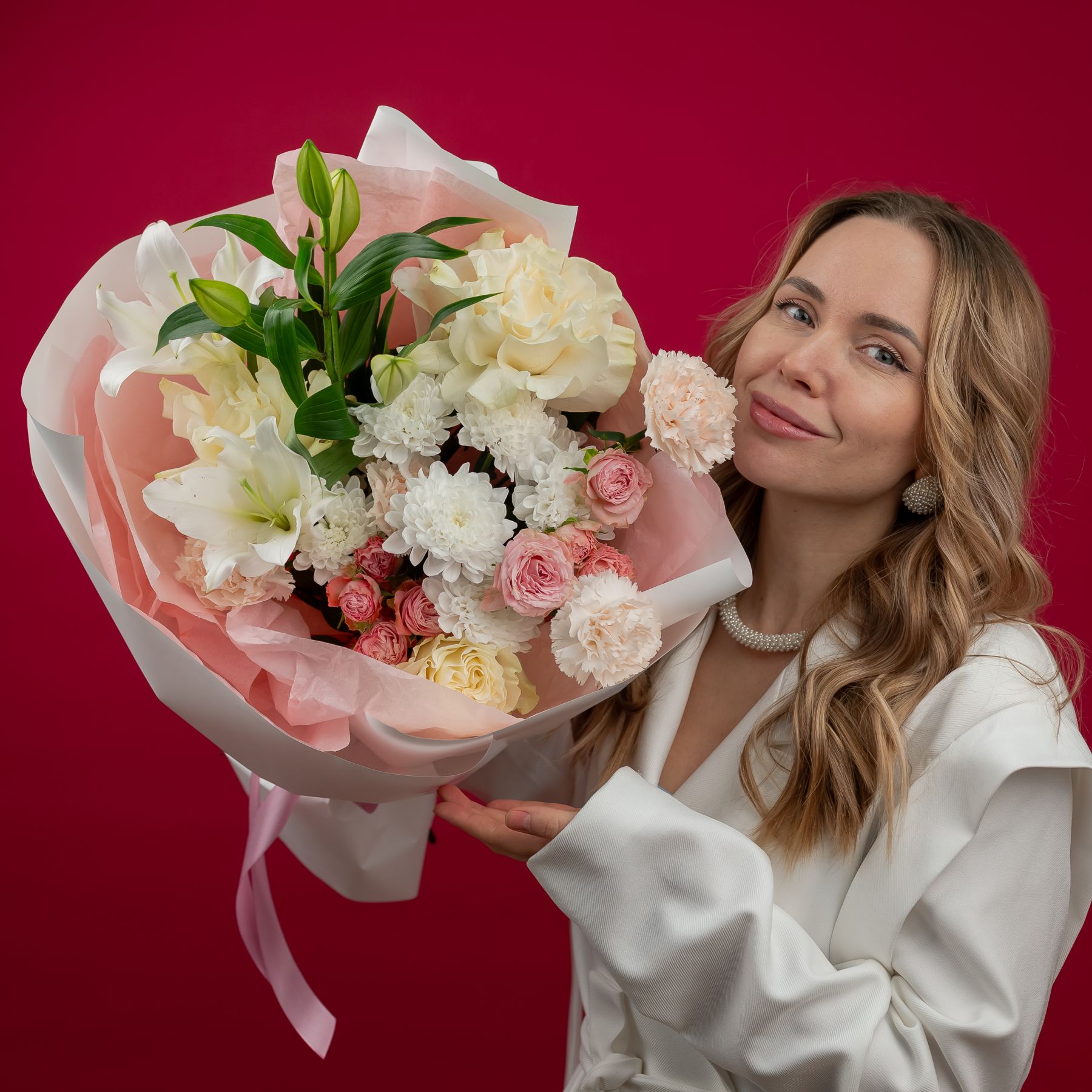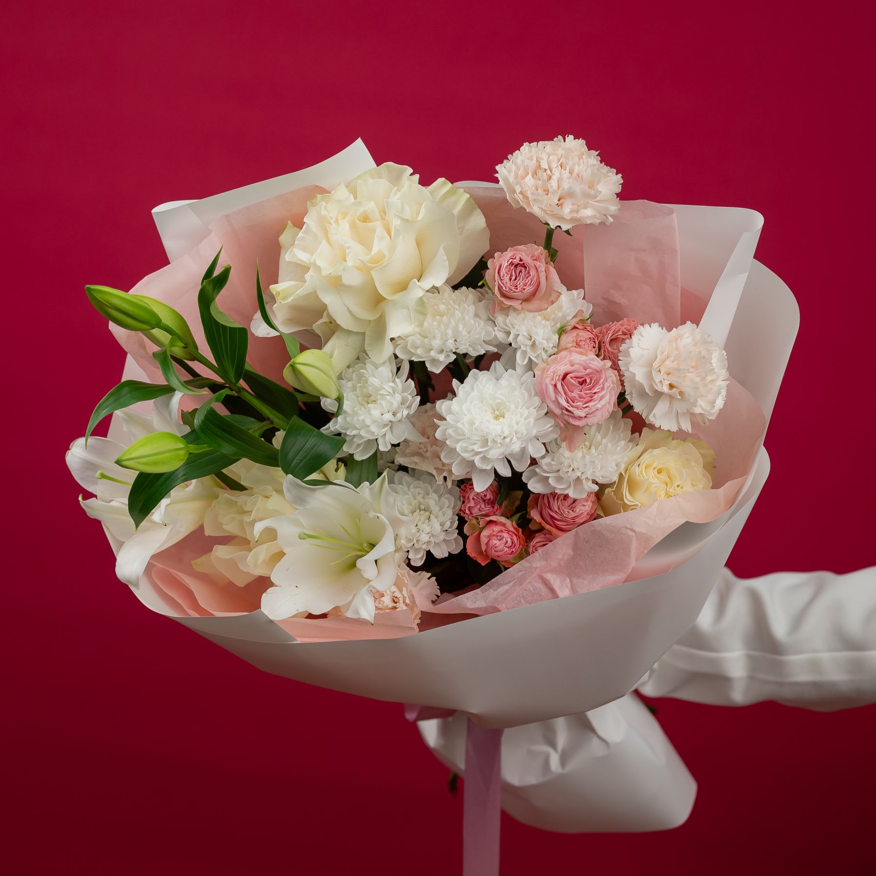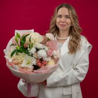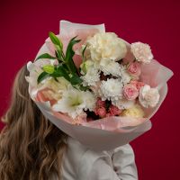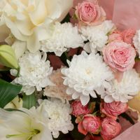 Букет с кустовыми розами, хризантемами и лилией купить с доставкой в Улан-Удэ за 5750 рублей | «Цветочный BAZAAR»