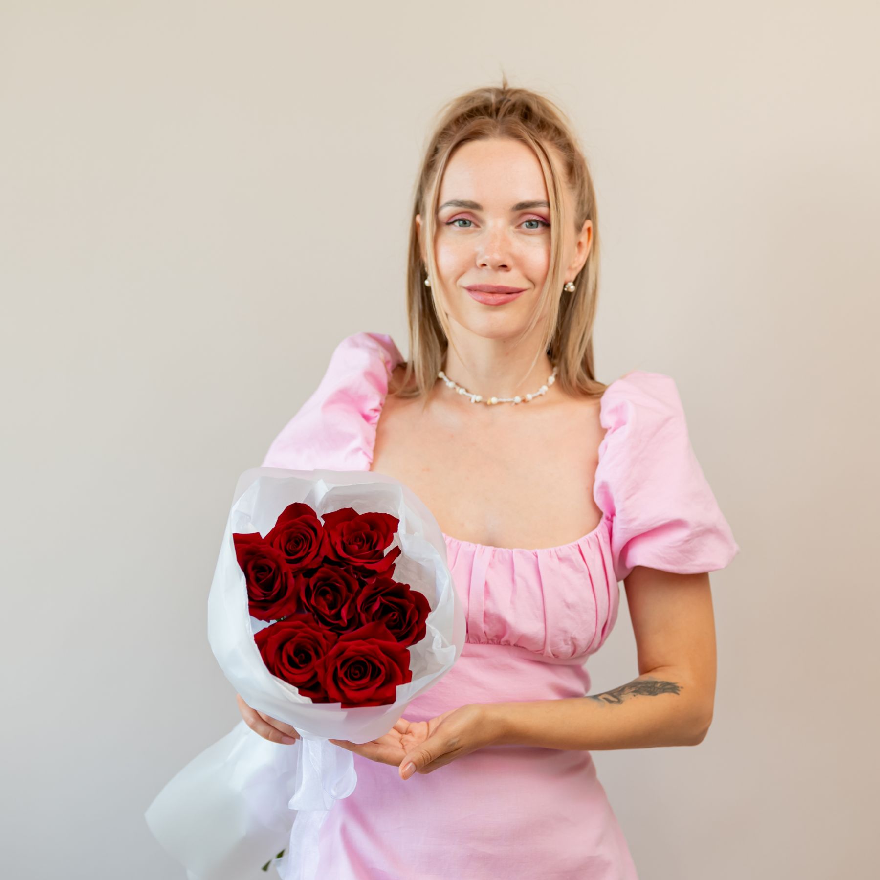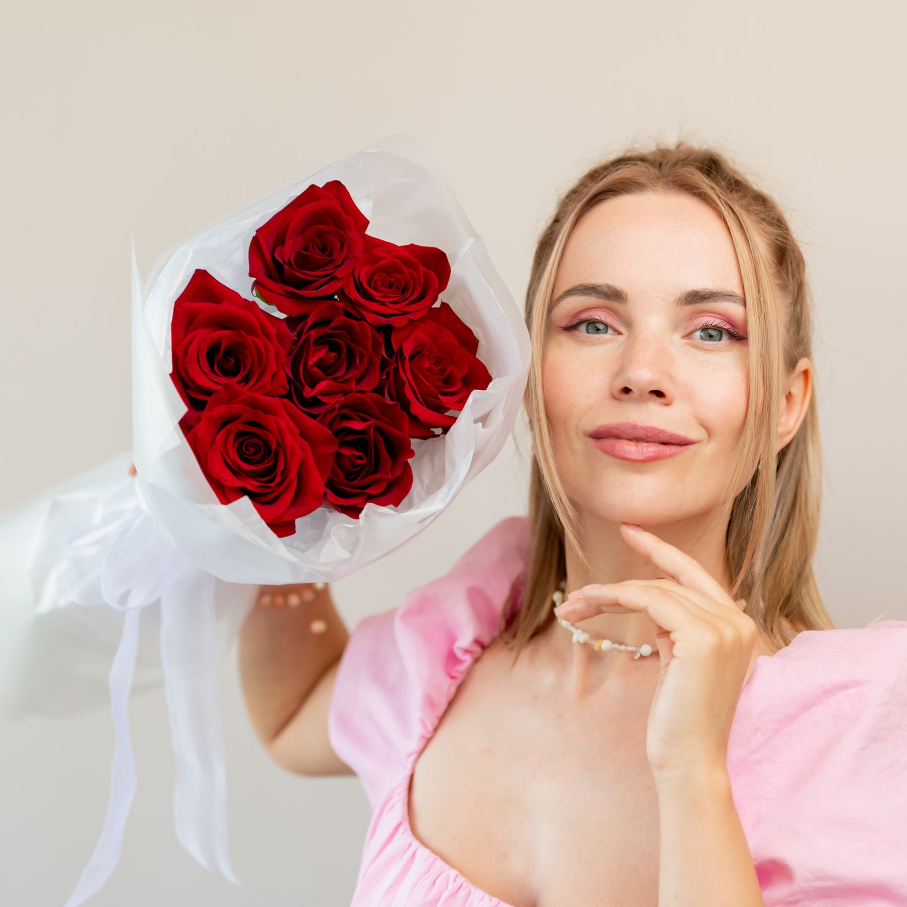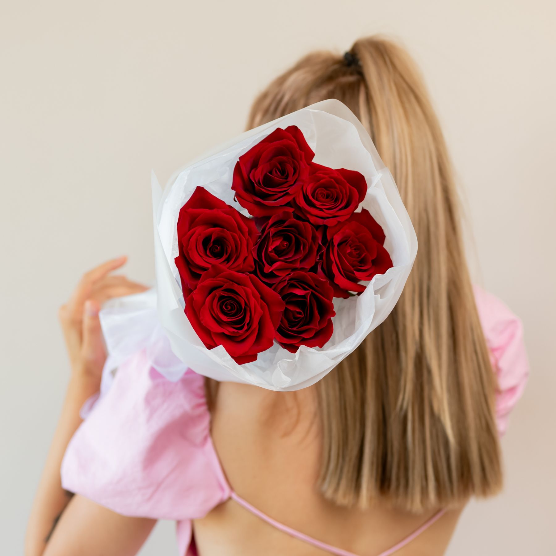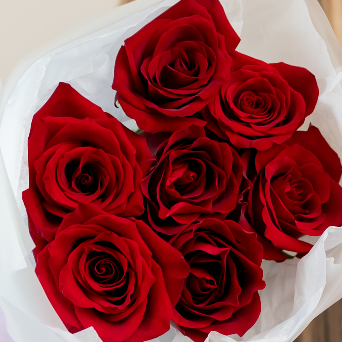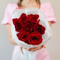 7 красных роз в упаковке (60см) купить с доставкой в Улан-Удэ за 3600 рублей | «Цветочный BAZAAR»