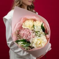 Сборный букет с гортензией и французской розой купить с доставкой в Улан-Удэ за 3750 рублей | «Цветочный BAZAAR»