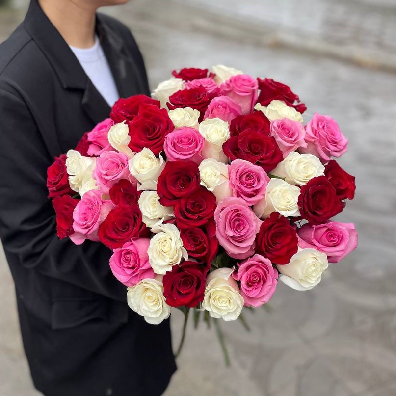 51 роза микс Эквадор. белого, красного и розового цвета купить с доставкой в Улан-Удэ за 16930 рублей | «Цветочный BAZAAR»