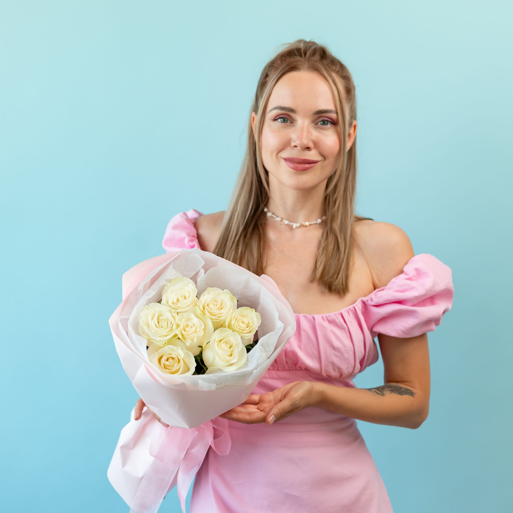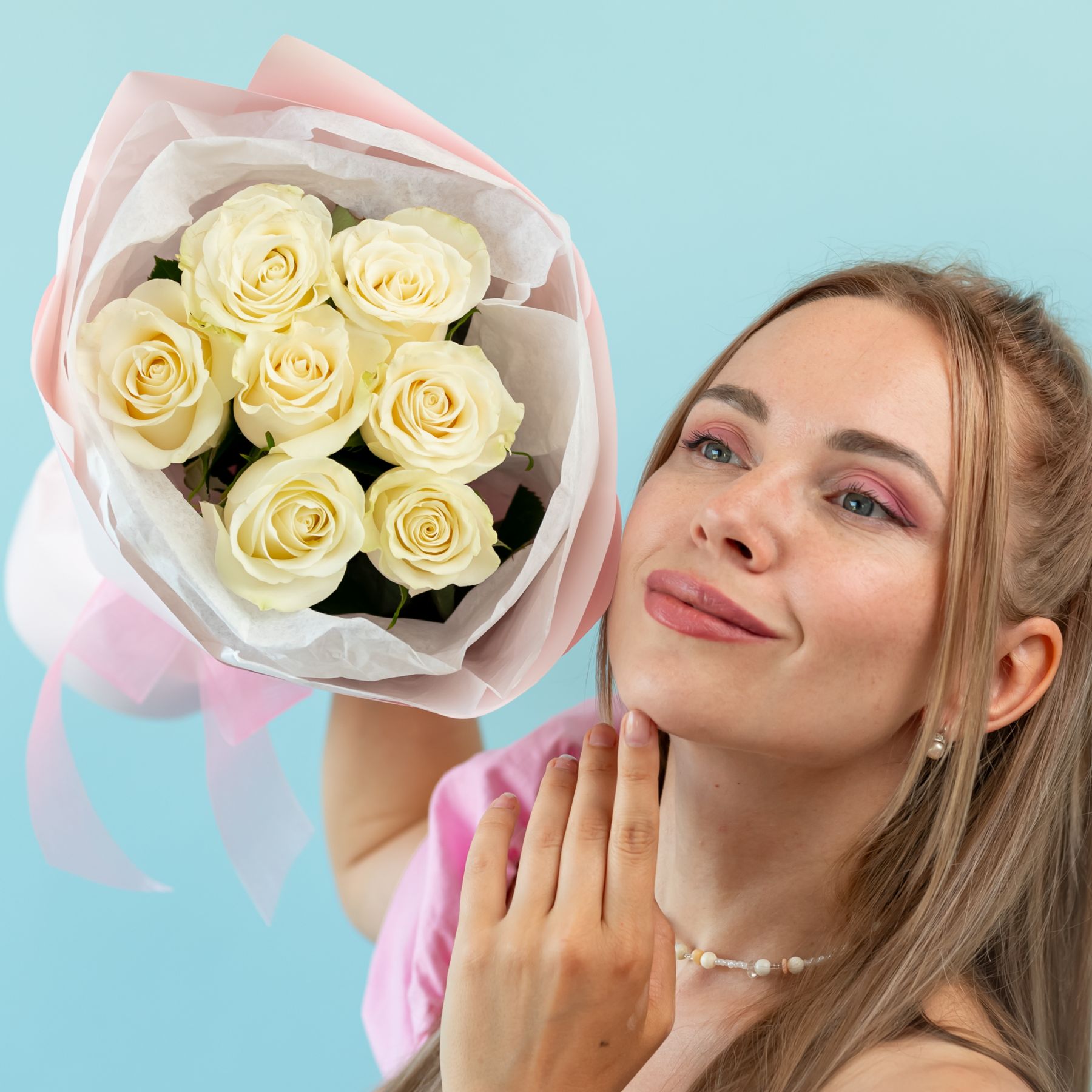 7 белых роз (60см) купить с доставкой в Улан-Удэ за 3600 рублей | «Цветочный BAZAAR»