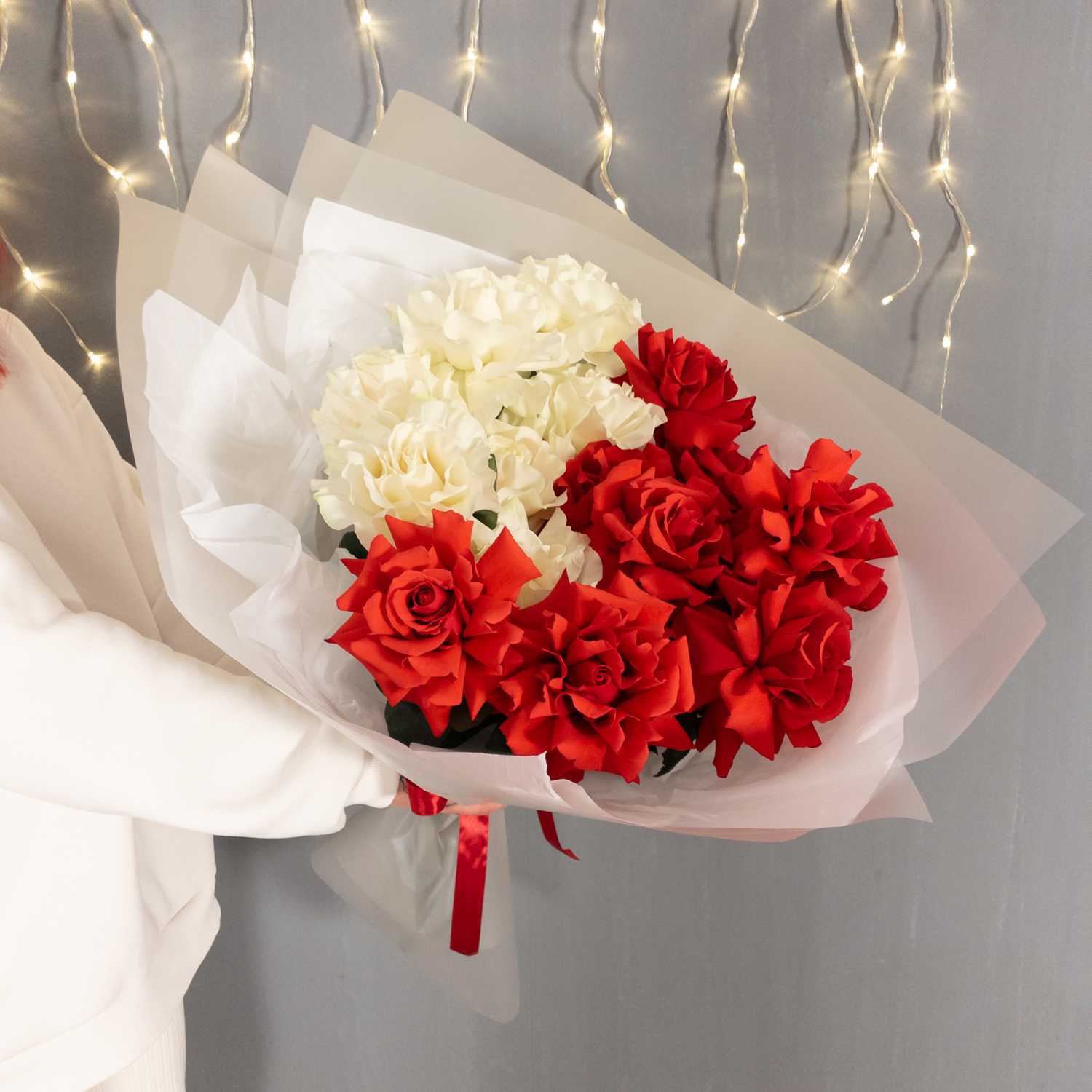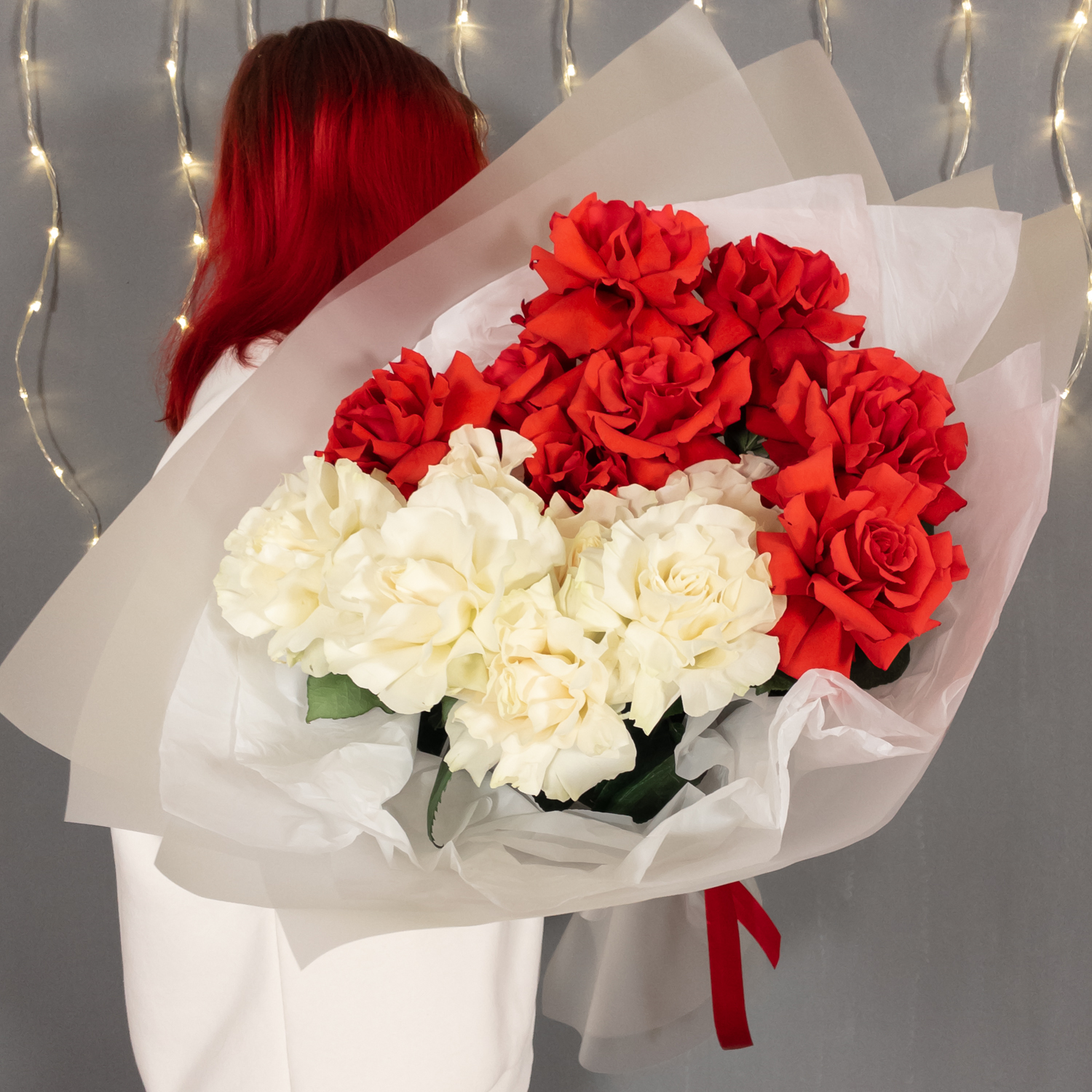 Букет из 15 красно-белых французских роз купить с доставкой в Улан-Удэ за 7150 рублей | «Цветочный BAZAAR»