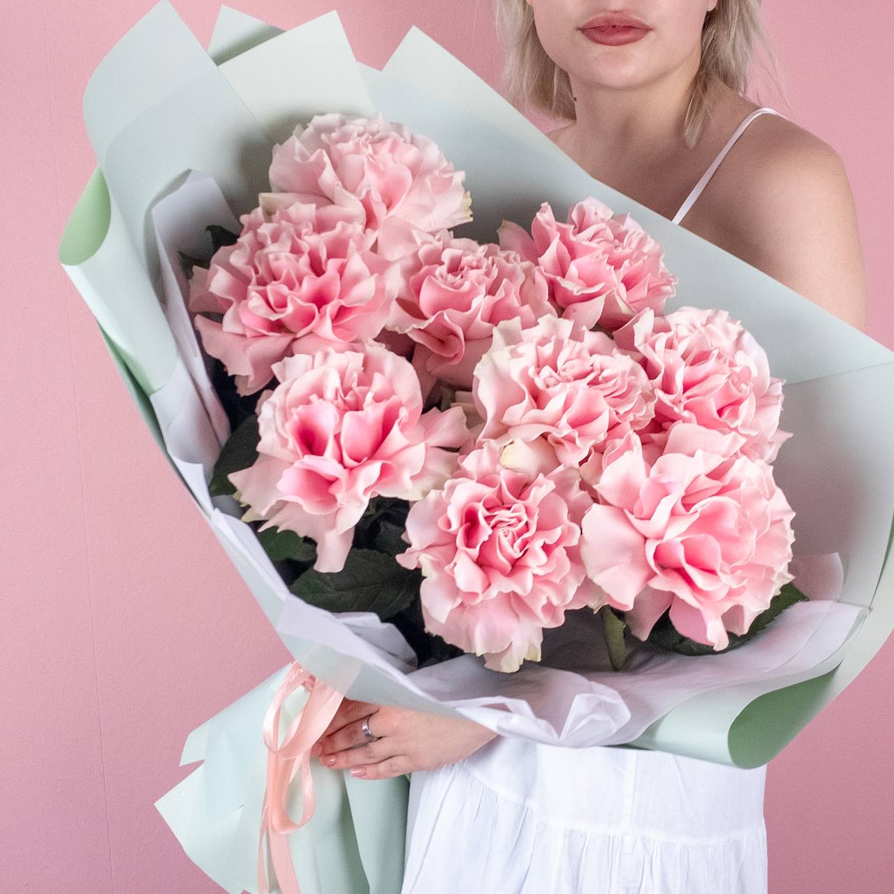 Букет из 9 нежно-розовых французских роз в мятной упаковке купить с доставкой в Улан-Удэ за 4450 рублей | «Цветочный BAZAAR»