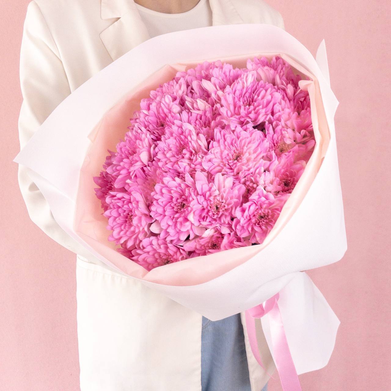 Букет из розовых хризантем (от 7 шт) купить с доставкой в Улан-Удэ за 2950 рублей | «Цветочный BAZAAR»