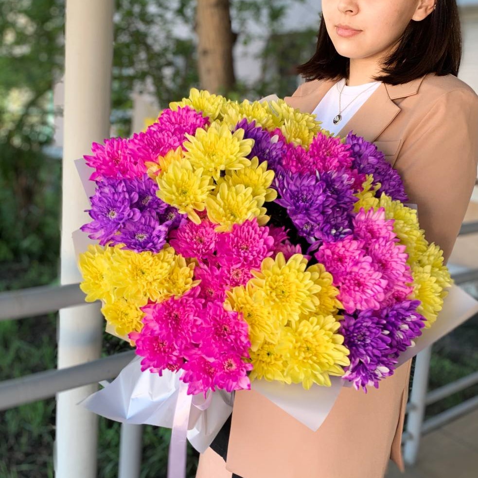 Букет яркие хризантемки (от 9 шт) купить с доставкой в Улан-Удэ за 3450 рублей | «Цветочный BAZAAR»