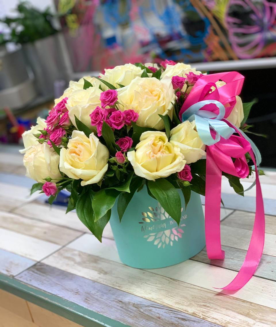 Цветочная композиция с розами в коробке купить с доставкой в Улан-Удэ за 12150 рублей | «Цветочный BAZAAR»