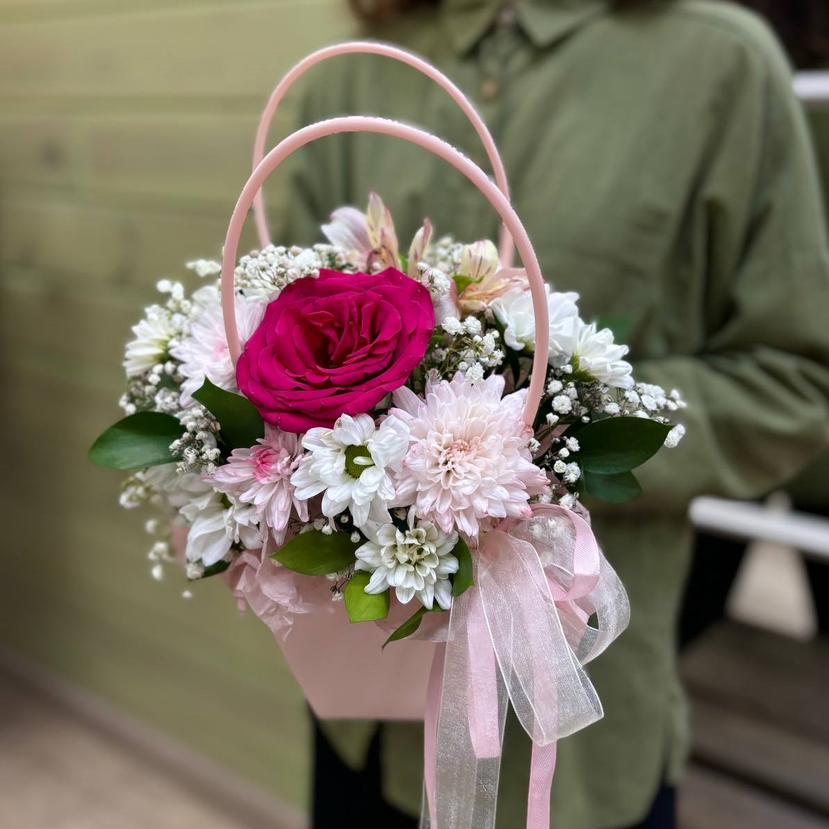 Композиция сумочка из цветов для любимой мамочки купить с доставкой в Улан-Удэ за 2850 рублей | «Цветочный BAZAAR»