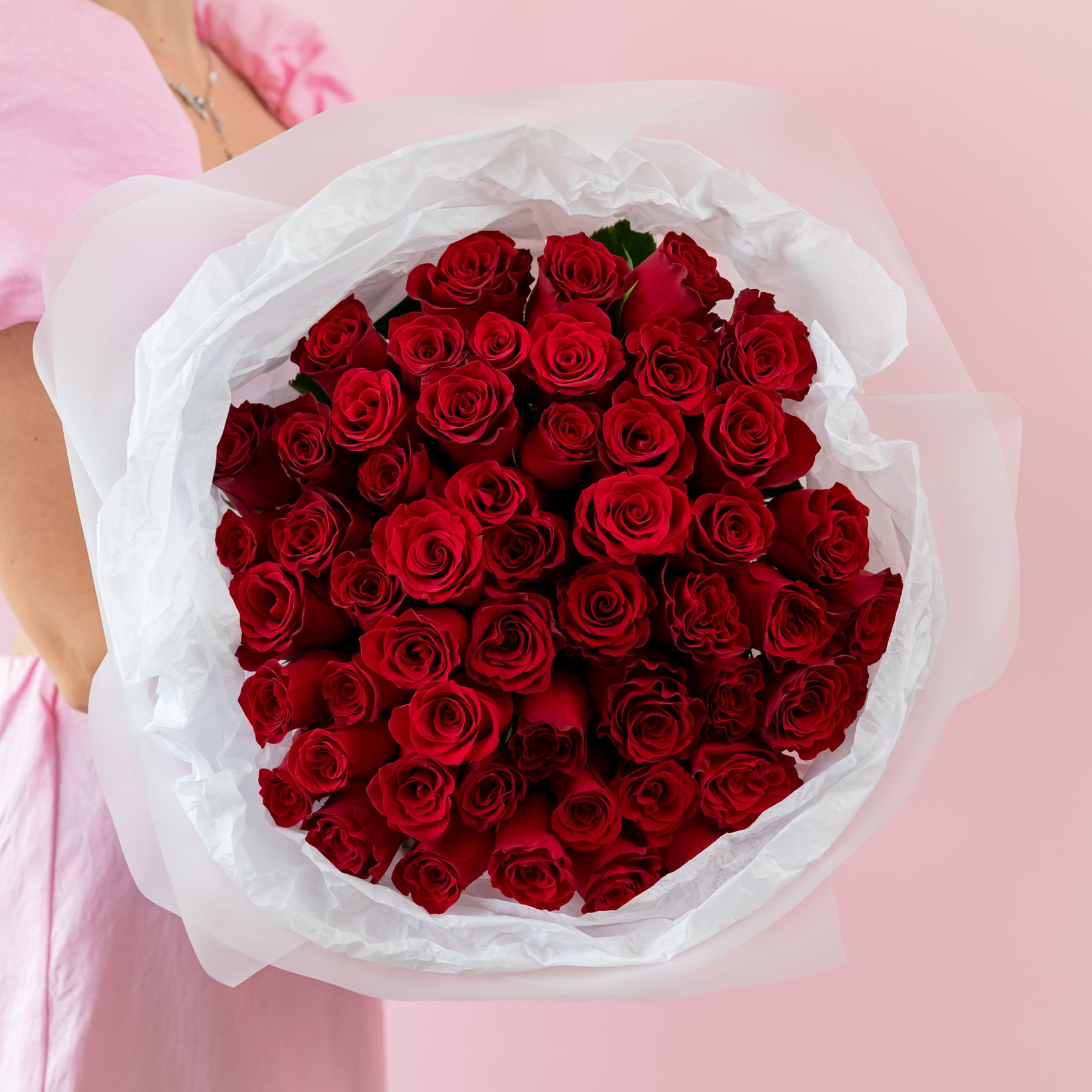 Красная роза 50см от 15 шт купить с доставкой в Улан-Удэ за 3300 рублей | «Цветочный BAZAAR»