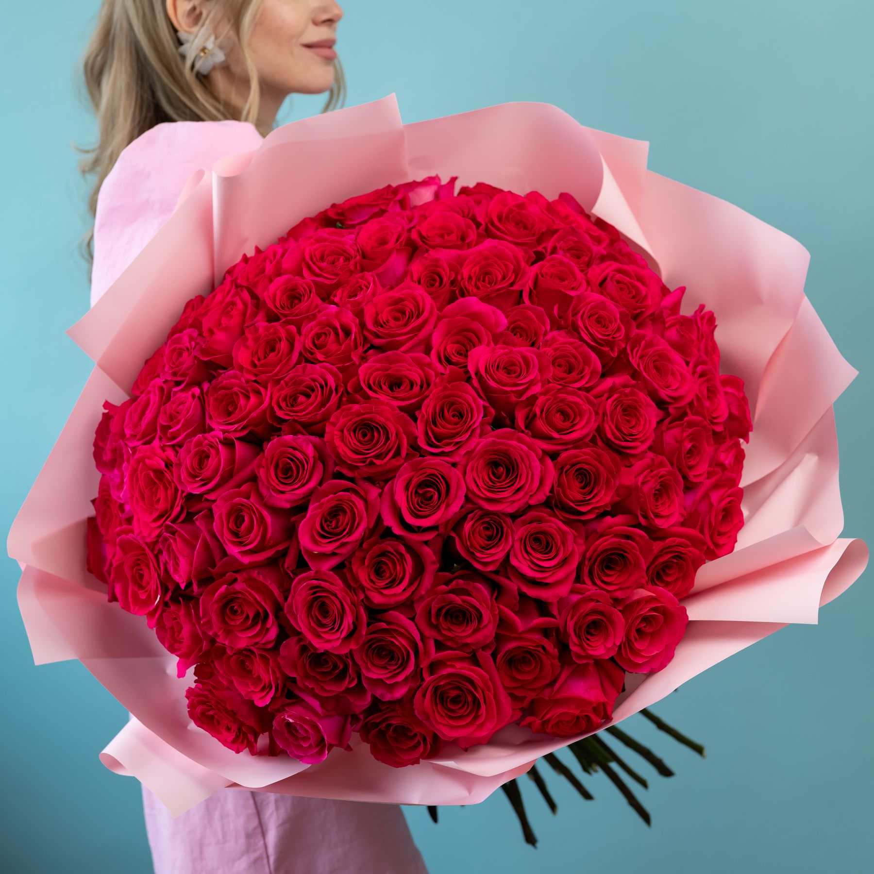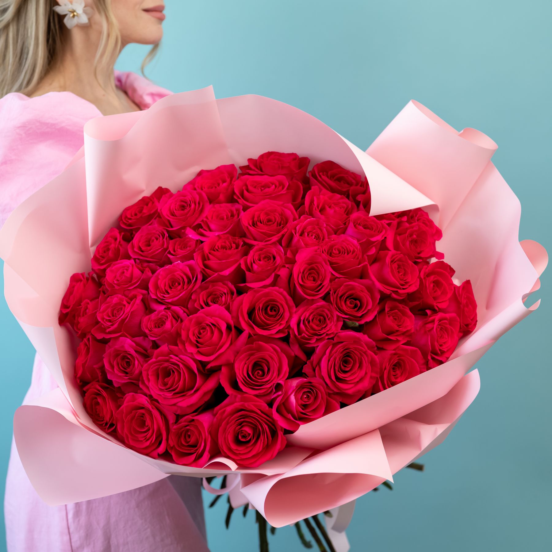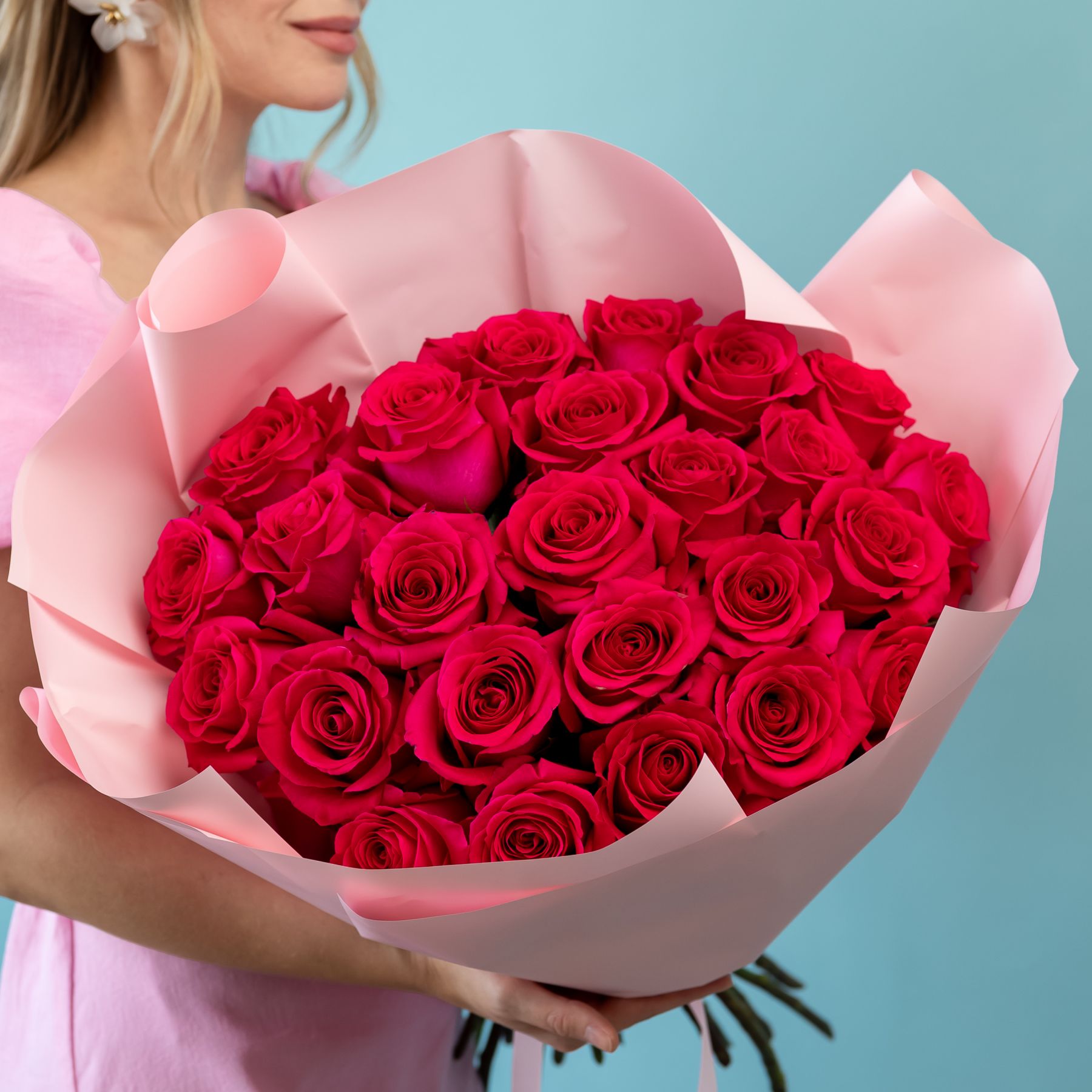 Алая роза 60см от 7 шт купить с доставкой в Улан-Удэ за 3650 рублей | «Цветочный BAZAAR»
