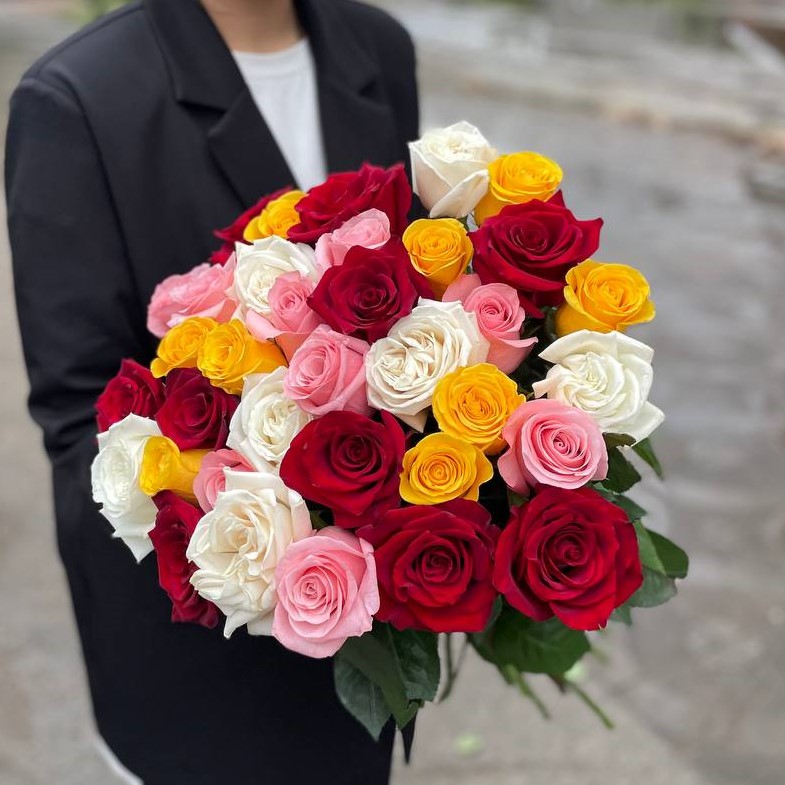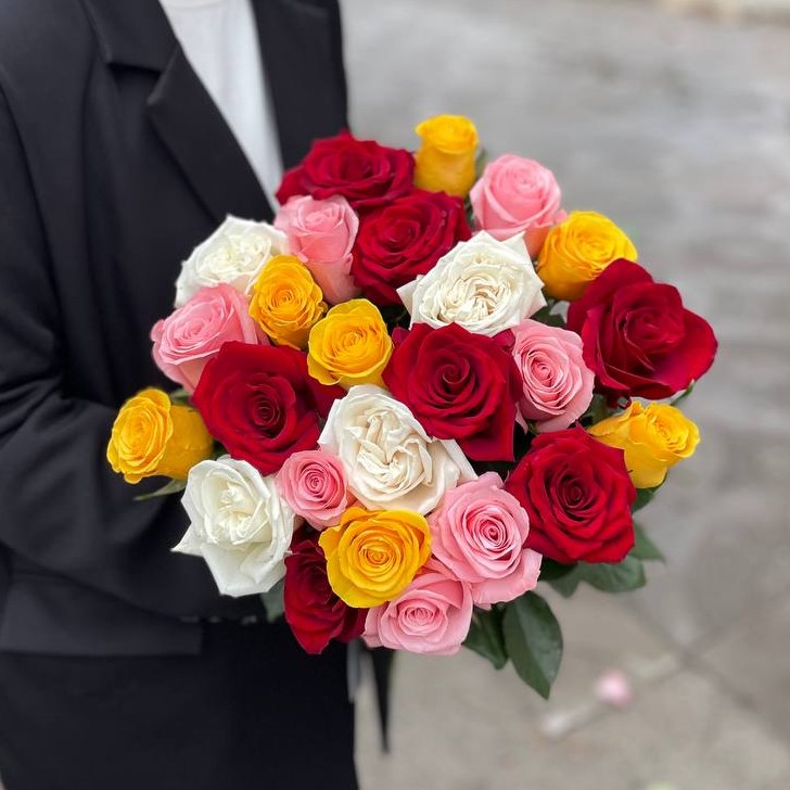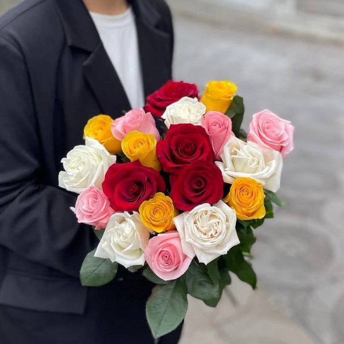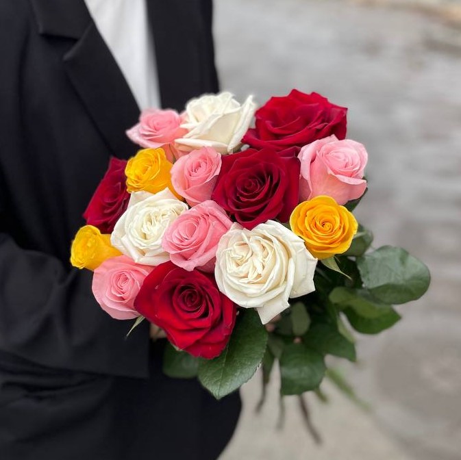 Розы яркий микс (от 11 шт) красные, быле, розовые и желтые купить с доставкой в Улан-Удэ за 3960 рублей | «Цветочный BAZAAR»