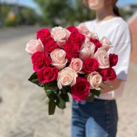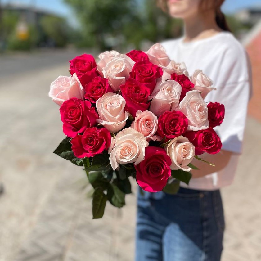 Акция! Розы микс (от 25 шт) нежно розового и ярко розового цвета купить с доставкой в Улан-Удэ за 3825 рублей | «Цветочный BAZAAR»