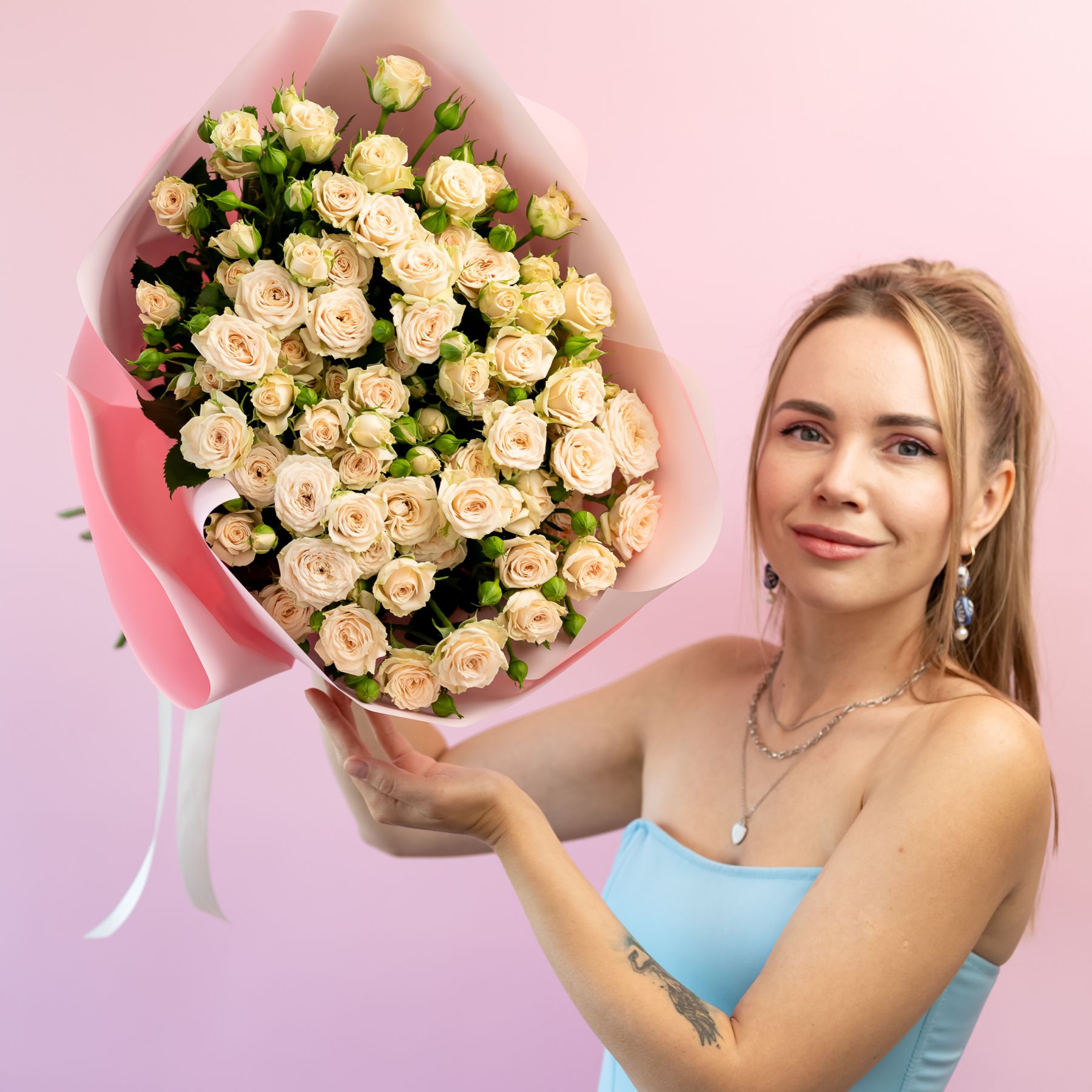 15 кустовых роз сорт Таня купить с доставкой в Улан-Удэ за 10250 рублей | «Цветочный BAZAAR»