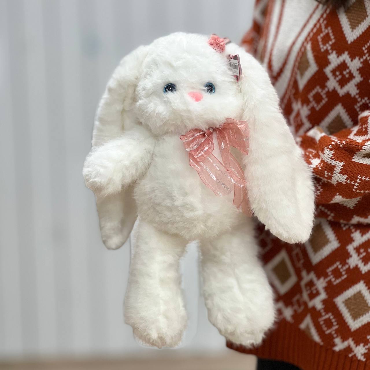 Мягкая игрушка "Зайка с бантиком" купить с доставкой в Улан-Удэ за 1500 рублей | «Цветочный BAZAAR»