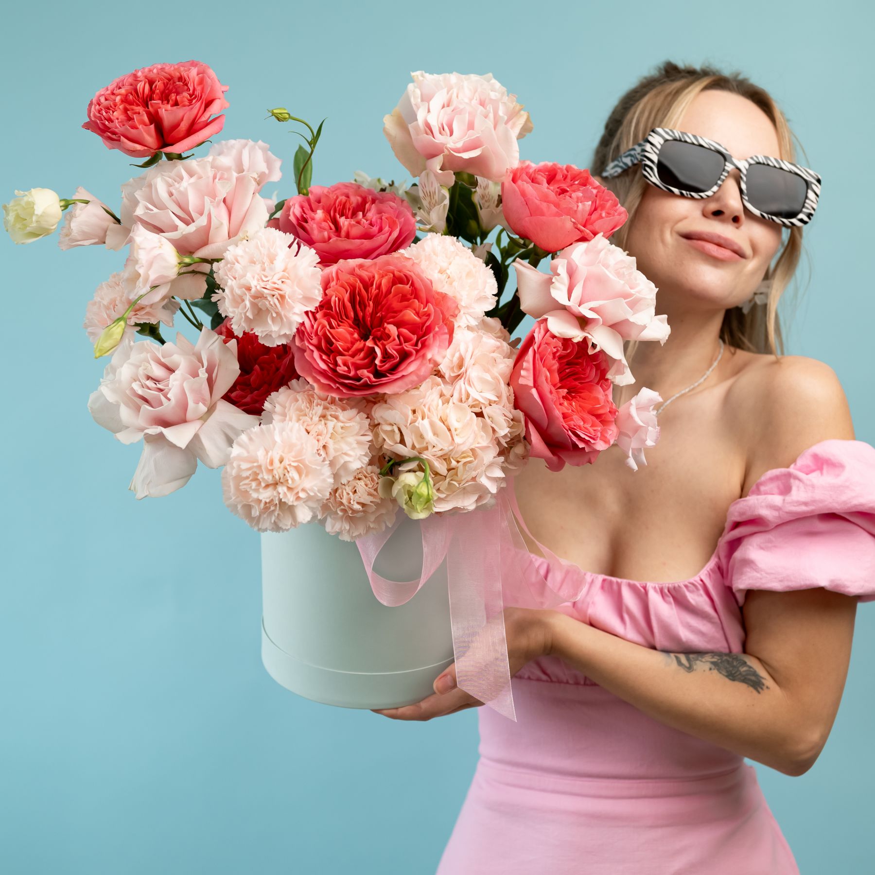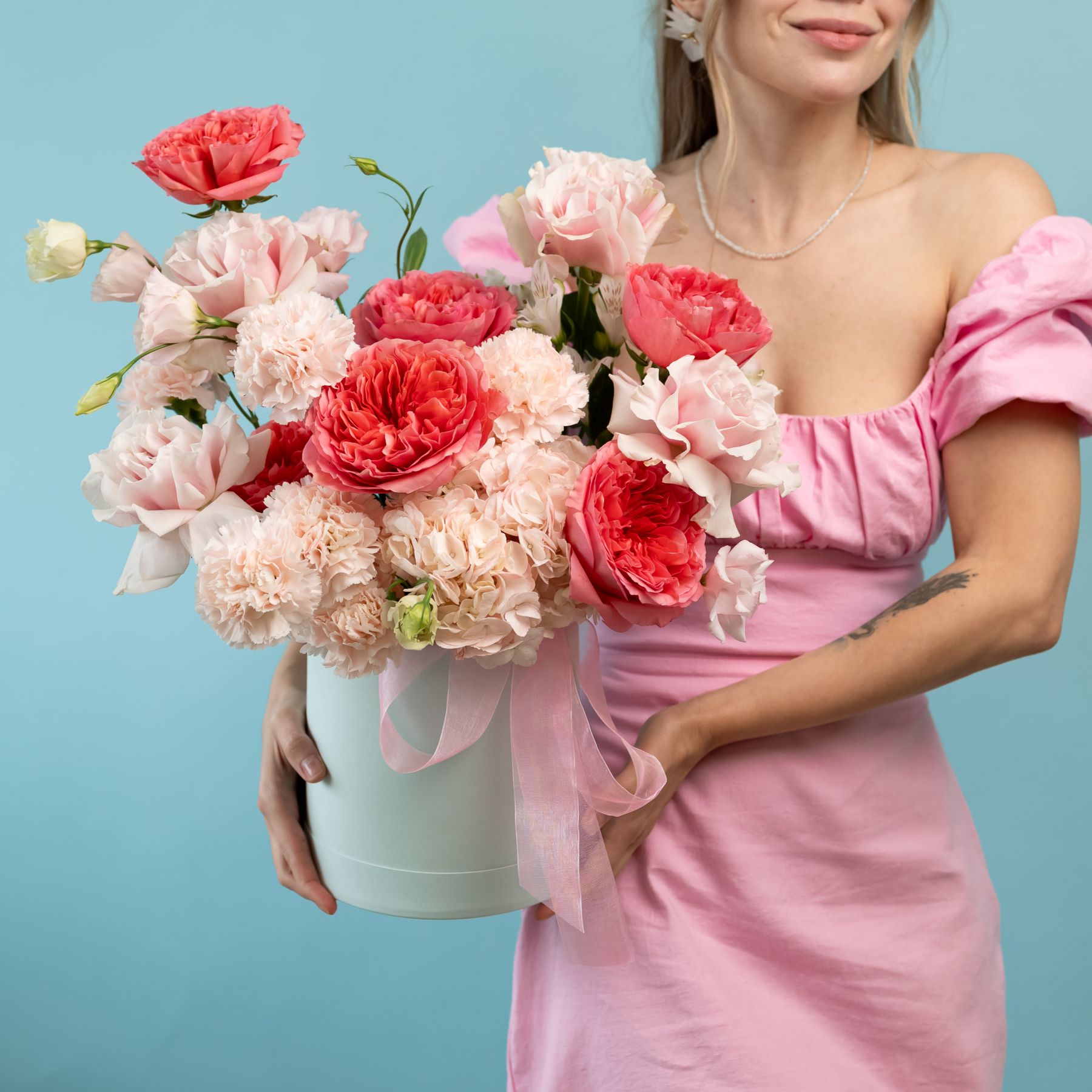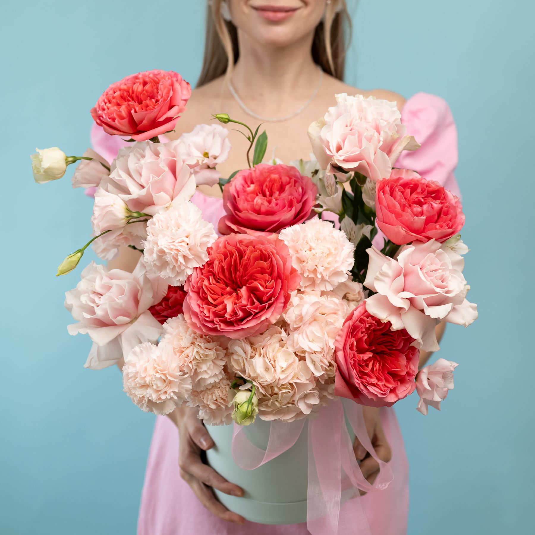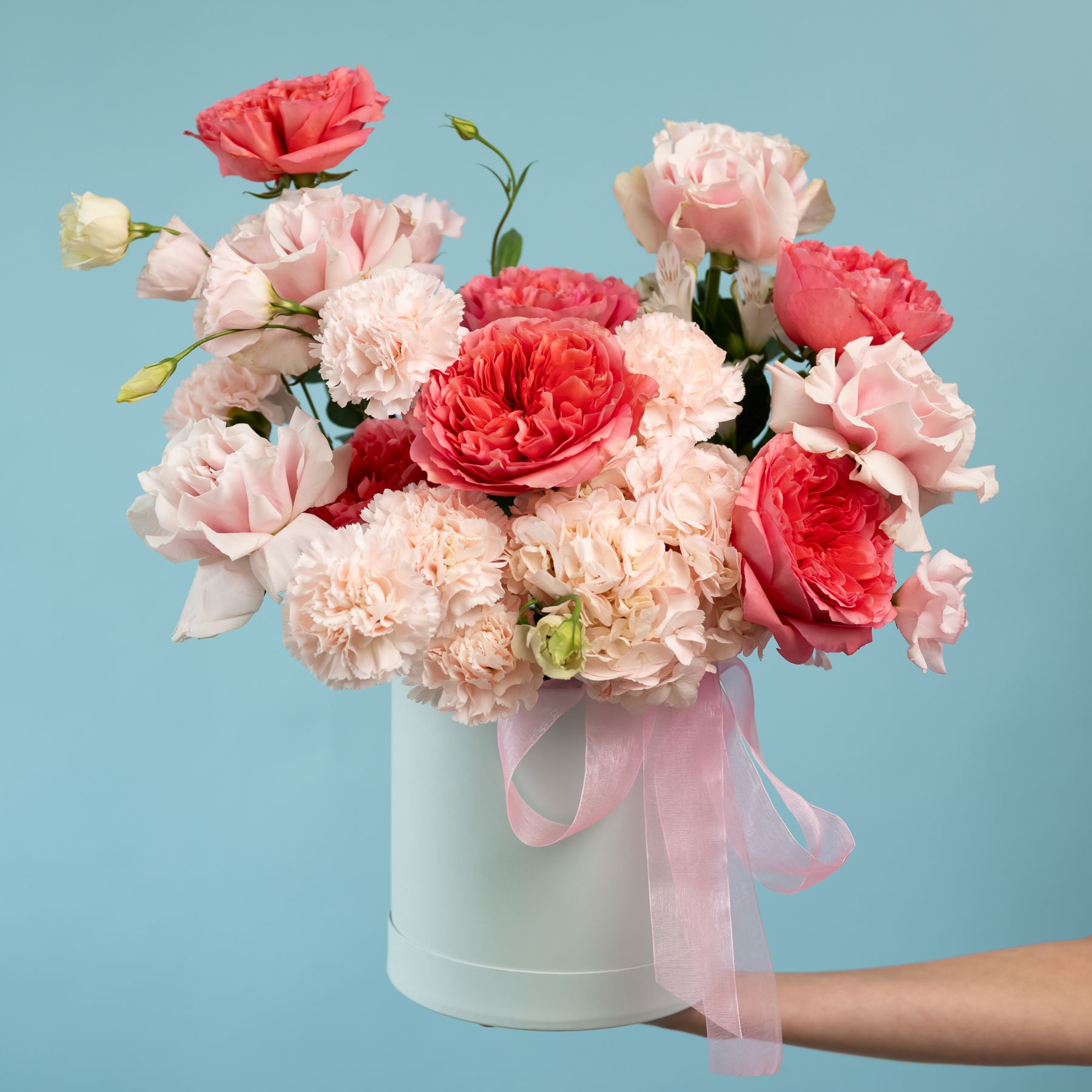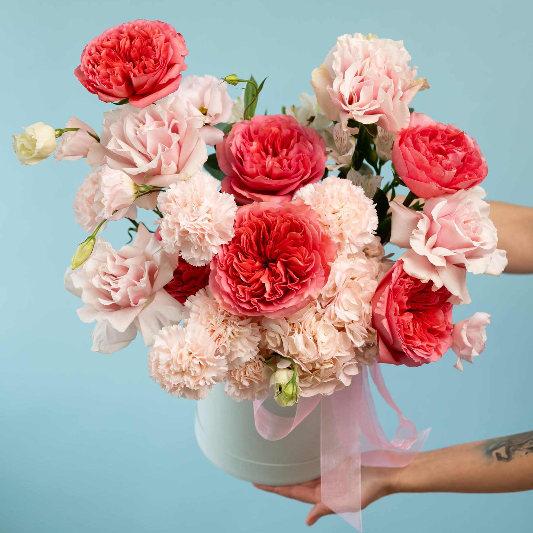 Шляпная коробка с пионовидными и французскими розами купить с доставкой в Улан-Удэ за 9420 рублей | «Цветочный BAZAAR»