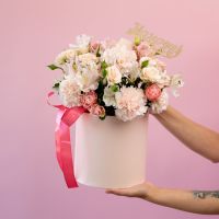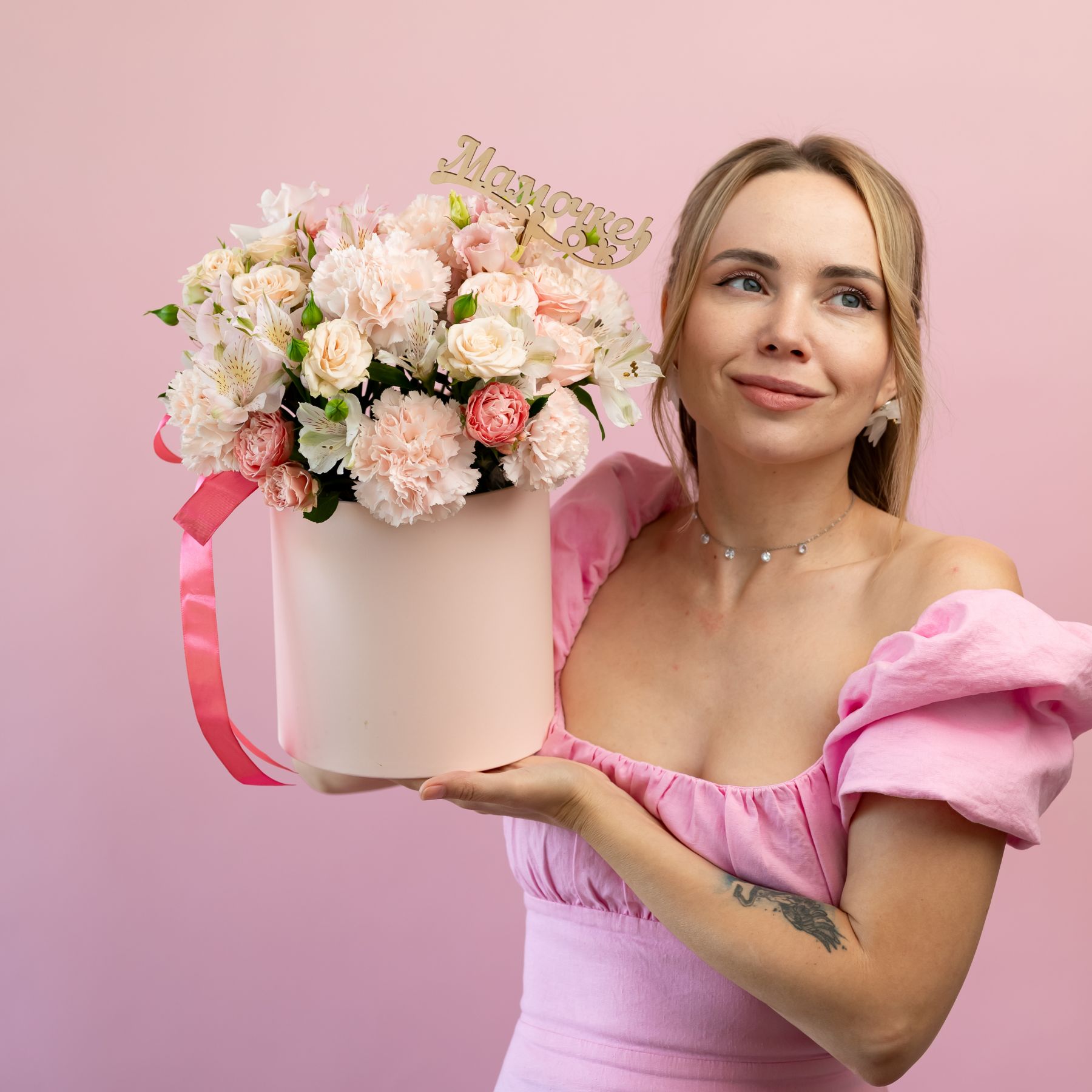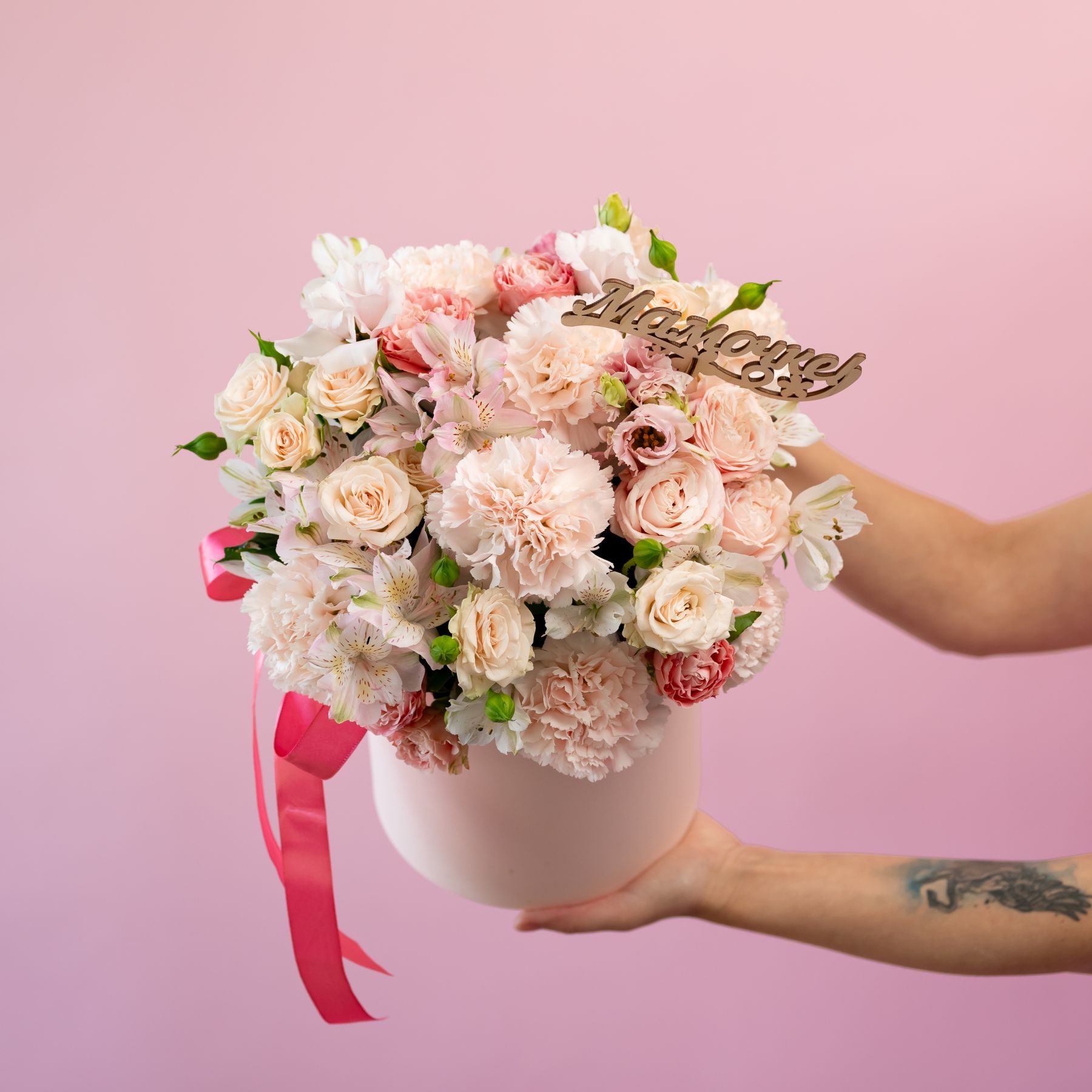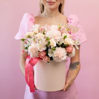 Шляпная коробка маме, из роз, диантусов и альстромерий купить с доставкой в Улан-Удэ за 10300 рублей | «Цветочный BAZAAR»
