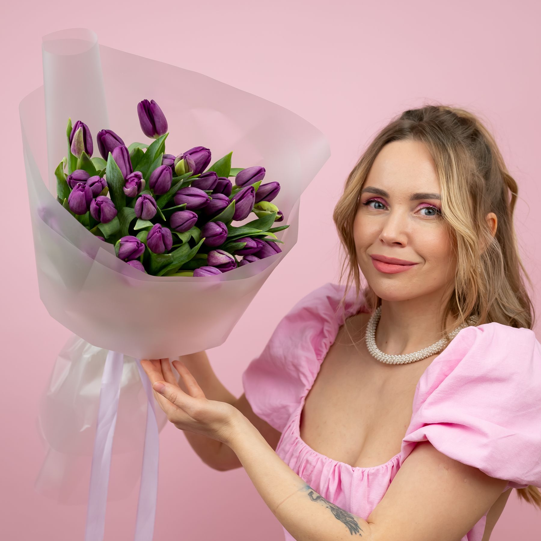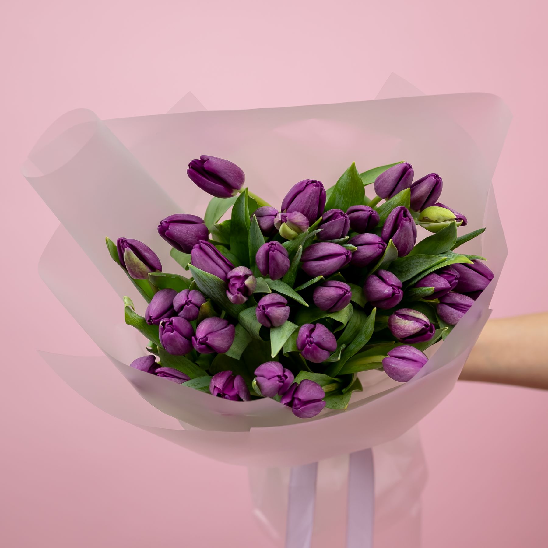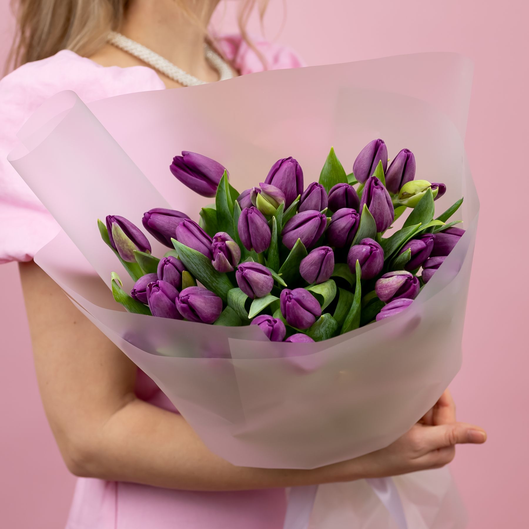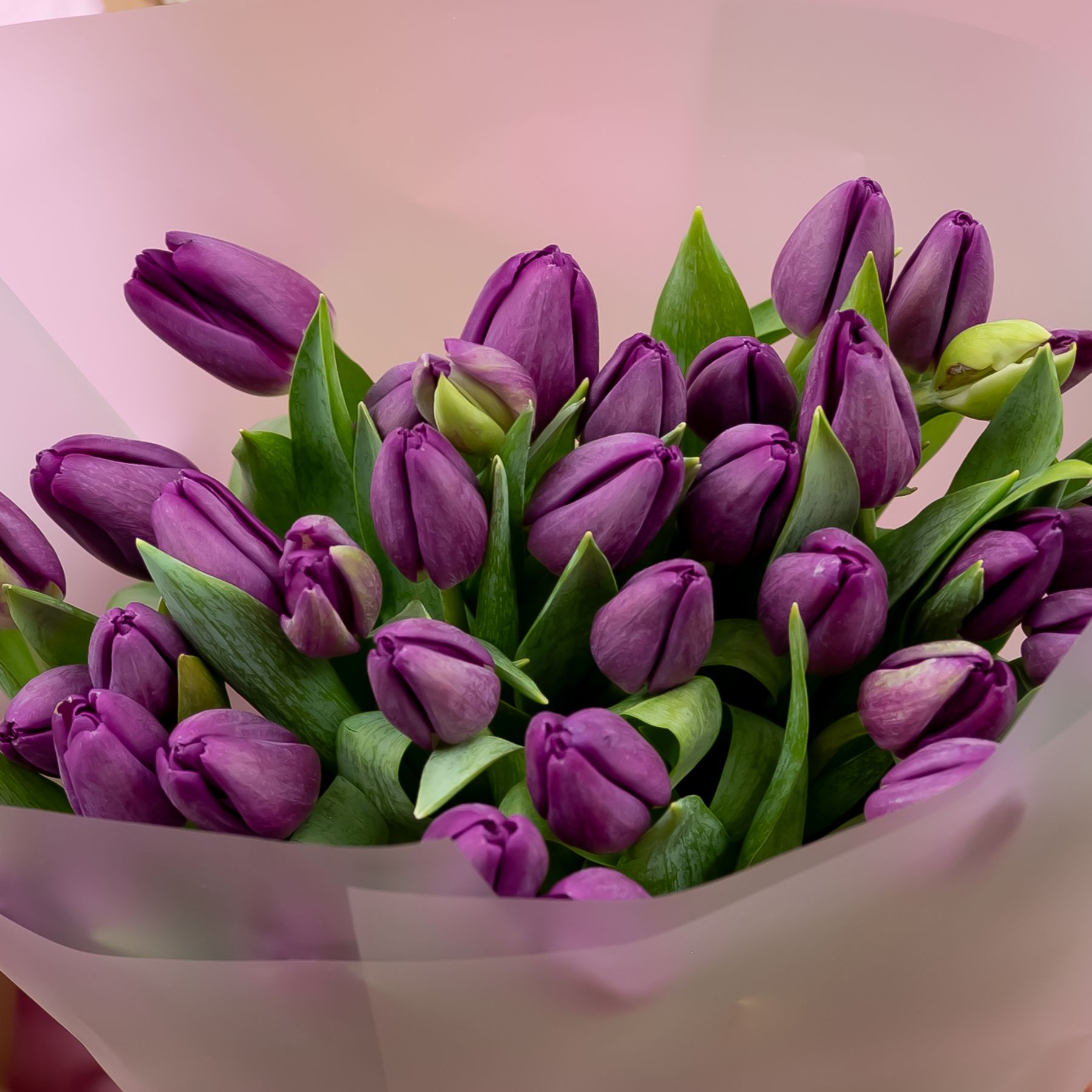 Тюльпаны фиолетовые в упаковке (от 15 шт) купить с доставкой в Улан-Удэ за 4350 рублей | «Цветочный BAZAAR»