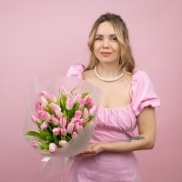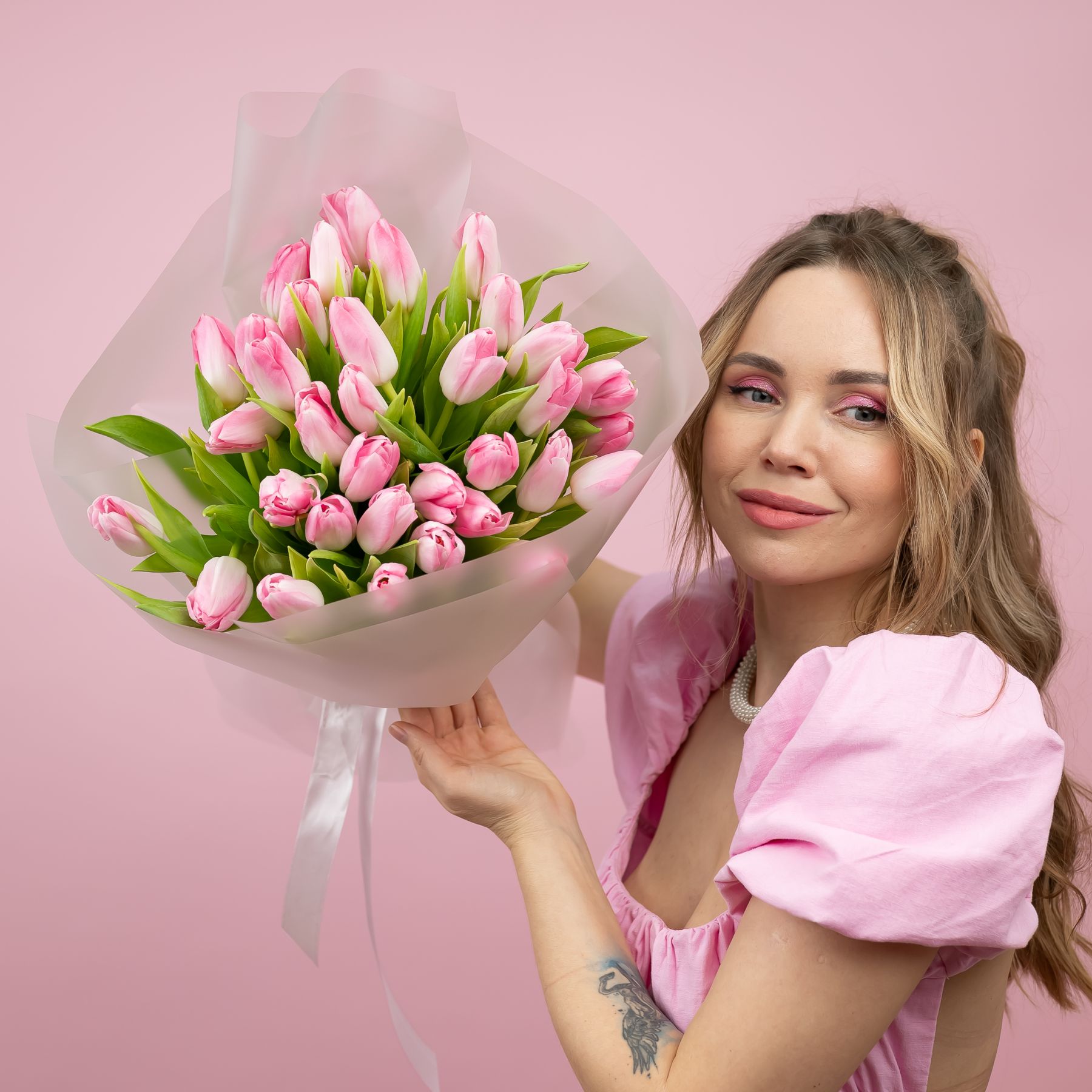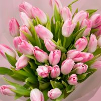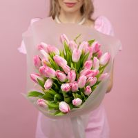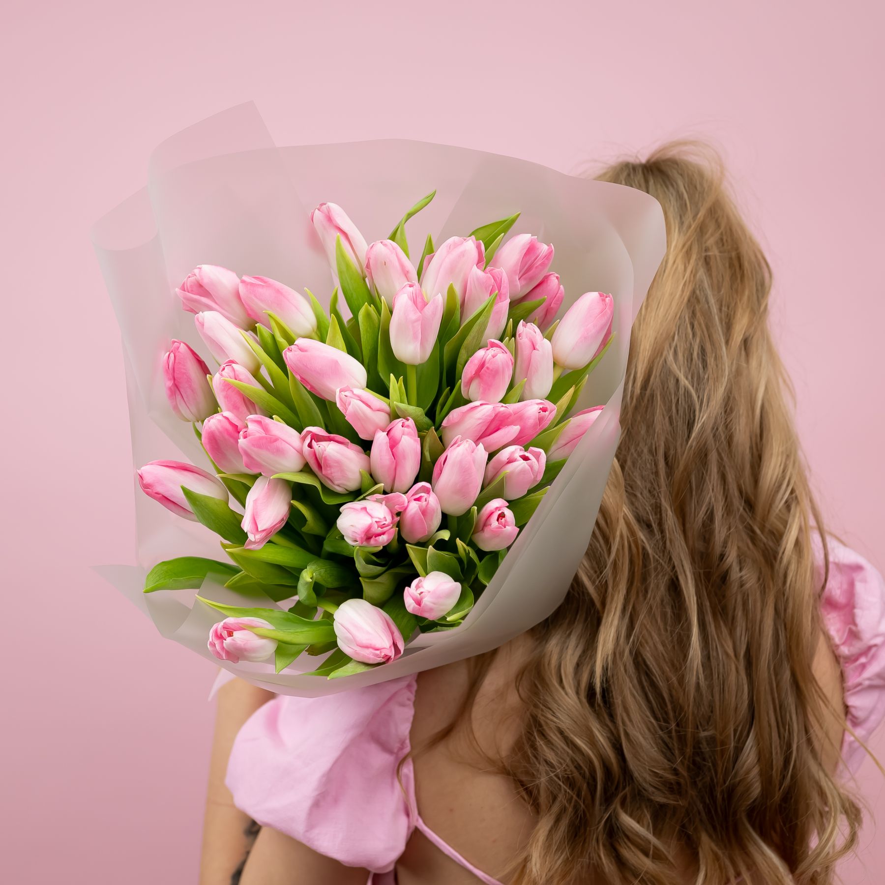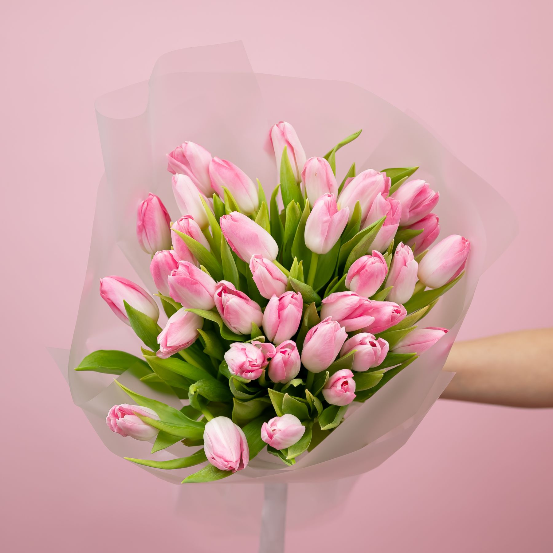 Тюльпаны светло-розовые 35 шт в упаковке купить с доставкой в Улан-Удэ за 9350 рублей | «Цветочный BAZAAR»